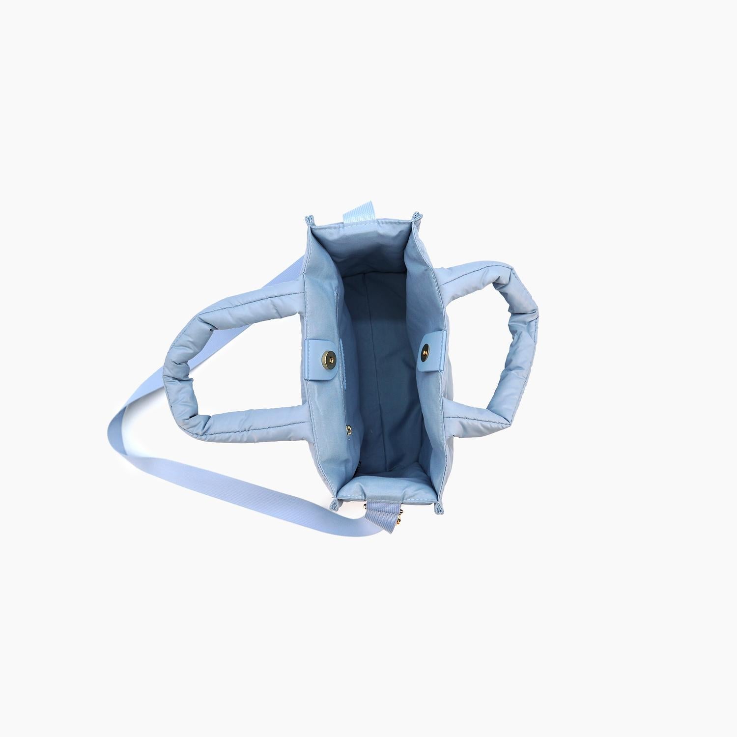 Discover the Women's Kiara Quilted Puffer Heart-embossed Tote Bag by Like Dreams, a chic addition to your accessory collection. With its stylish blue nylon composition, this tote features a 6" top handle and a convenient 24" adjustable, detachable strap. The magnetic snap closure secures your essentials within its medium-sized main compartment and inner zipper pocket. Effortlessly enhance your outfit with this 14.6 oz tote, measuring 11.5" in width, 9.5" in height, and 5.5" in depth.
