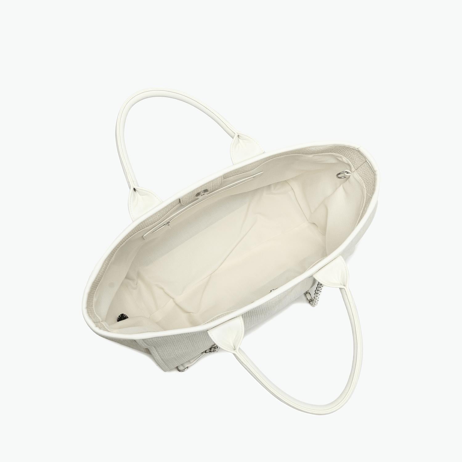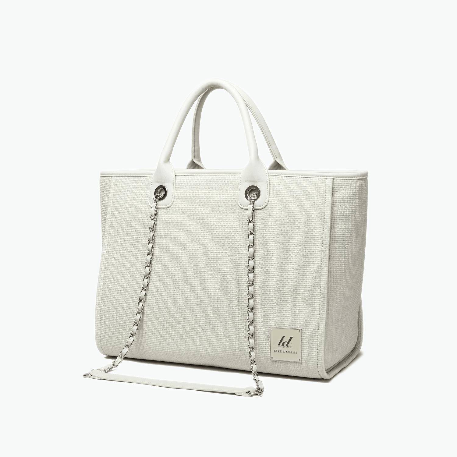 Além de ser a bolsa mais fofa do mundo, esta bolsa tote tem o tamanho perfeito para guardar todos os seus itens essenciais para as férias. Combine esta bolsa adorável com um vestido fluido e uns chinelos e pronto! Apresentamos a Bolsa Tote Vegana Loyalist Feminina da Like Dreams, um acessório essencial confeccionado em couro vegano na clássica cor branca. Esta bolsa foi cuidadosamente projetada com alças fixas de 15 cm, alças longas de metal trançado com corrente para maior conforto e fecho magnético para maior segurança. Medindo 43 cm de largura x 30 cm de altura x 20 cm de profundidade, ela oferece amplo espaço para um laptop de 40 cm e possui forro interno em nylon com um bolso interno e um bolso com zíper removível. Ideal para o trabalho ou para o dia a dia, esta bolsa tote de 1,03 m² combina funcionalidade com estilo elegante sem esforço.
