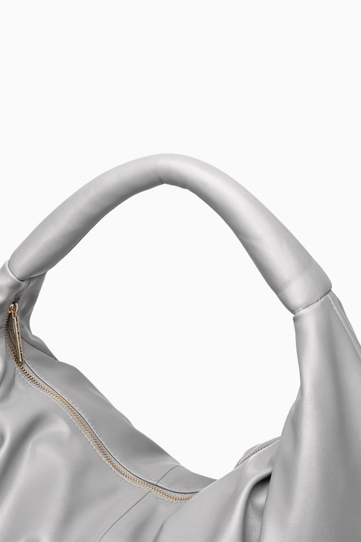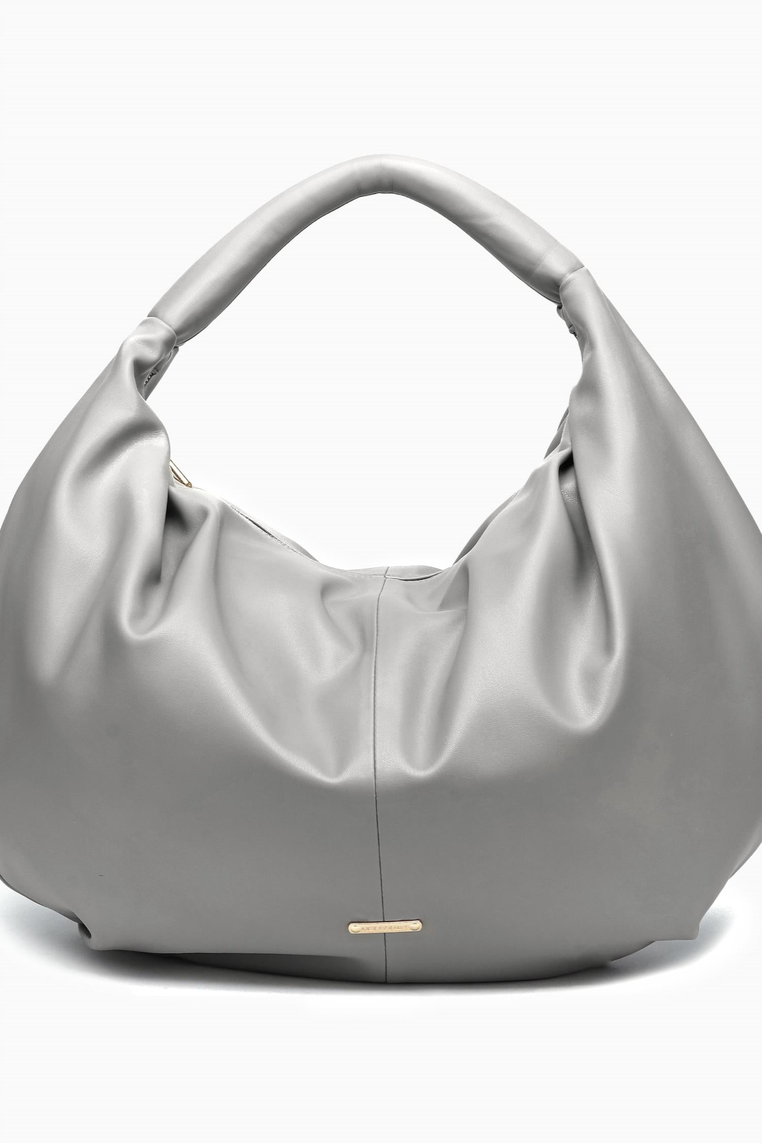 Abrace o estilo despojado com a Bolsa Hobo Wanderlust Tote Scrunchie da Like Dreams, confeccionada em couro vegano macio que simboliza a sofisticação moderna. Esta bolsa tote cinza grande possui fecho de zíper e acolchoamento macio nos ombros, tornando-a a escolha ideal tanto para um dia no escritório quanto para um brunch chique. Com dimensões de 45 cm de largura x 35 cm de altura x 18 cm de profundidade, esta bolsa despojada oferece amplo espaço e praticidade, incluindo um bolso interno com zíper e dois bolsos internos adicionais para armazenamento organizado. Ostente uma alça de 28 cm de altura e redefina sua coleção de acessórios com este item essencial.