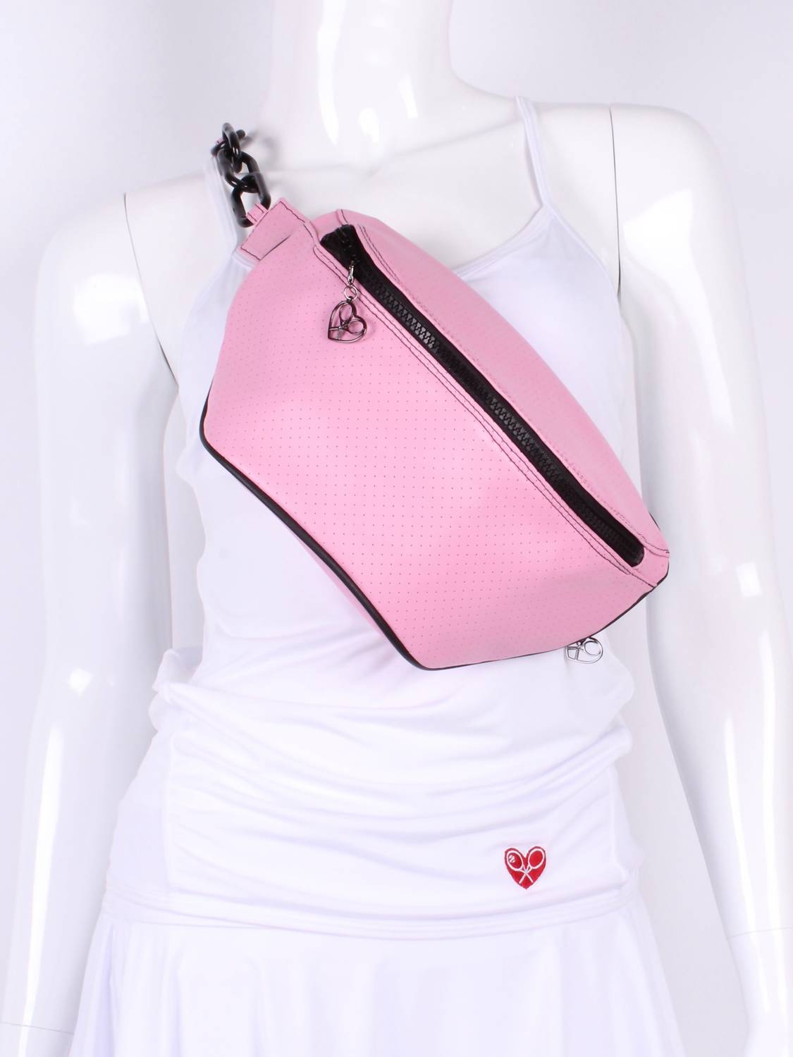 Esta bolsa transversal será sua bolsa preferida da estação. A Pochete Feminina da Love Love Tennis é um acessório chique e funcional para a mulher moderna. Feita à mão com carinho no centro de Los Angeles, esta bolsa de edição limitada oferece a combinação perfeita de luxo e praticidade. Feita em couro vegano macio e durável, possui um interior dividido, forrado com tecido ILMDP coordenado, e um bolso externo traseiro com zíper para maior praticidade. O fecho em cinto preto fosco se ajusta a quadris de 86 cm a 117 cm, tornando-a versátil para usar como transversal.