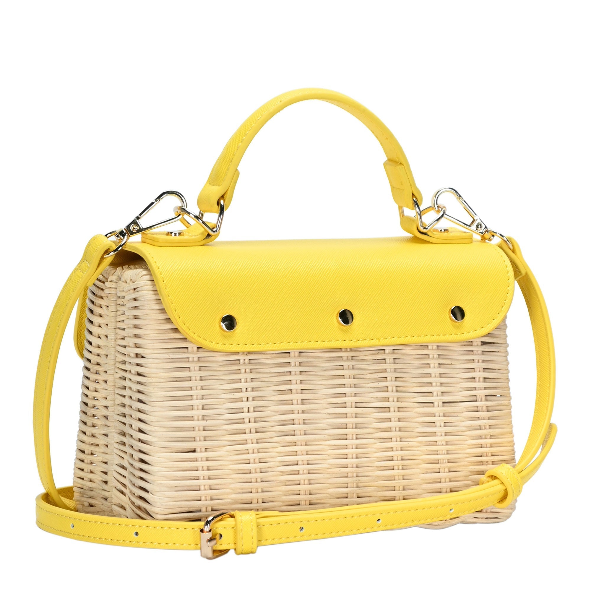Step into a world of timeless elegance and modern versatility with The Madeline Crossbody—a stunning fusion of sun-kissed straw and luxurious Saffiano vegan leather. This exquisitely crafted bag features a hard shell body that adds structure and style, while the delicate pop of color infuses it with a playful charm. Designed for the fashion-forward individual, The Madeline Crossbody effortlessly transitions from a chic satchel to a show-stopping crossbody, thanks to its detachable strap. Whether you're strolling through city streets or enjoying a summer getaway, this bag is the perfect companion, offering both form and function in a petite, yet statement-making silhouette. With its push-lock closure and light gold hardware, The Madeline Crossbody ensures your essentials are secure, while the color-match canvas inner lining adds a touch of sophistication to its already impeccable design.