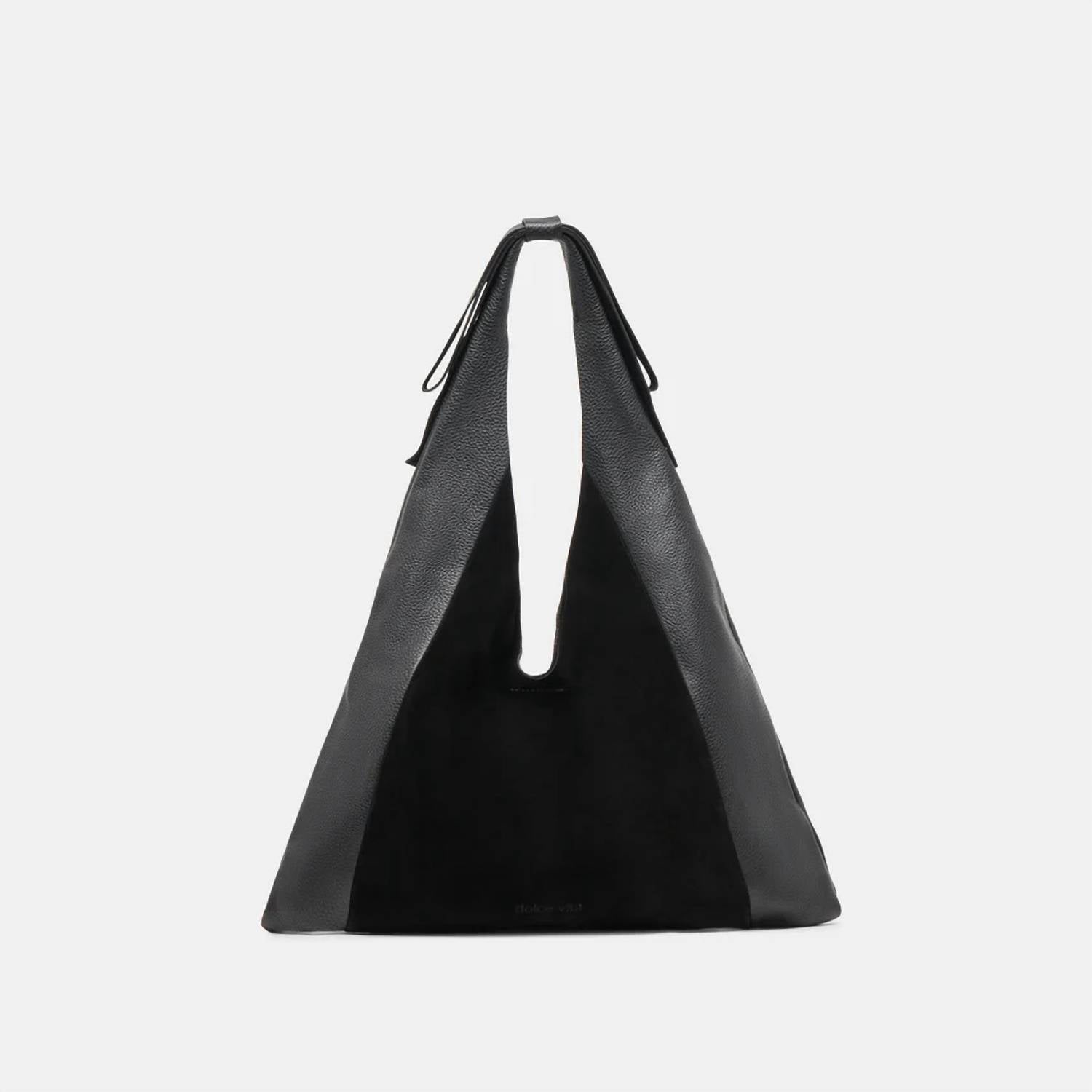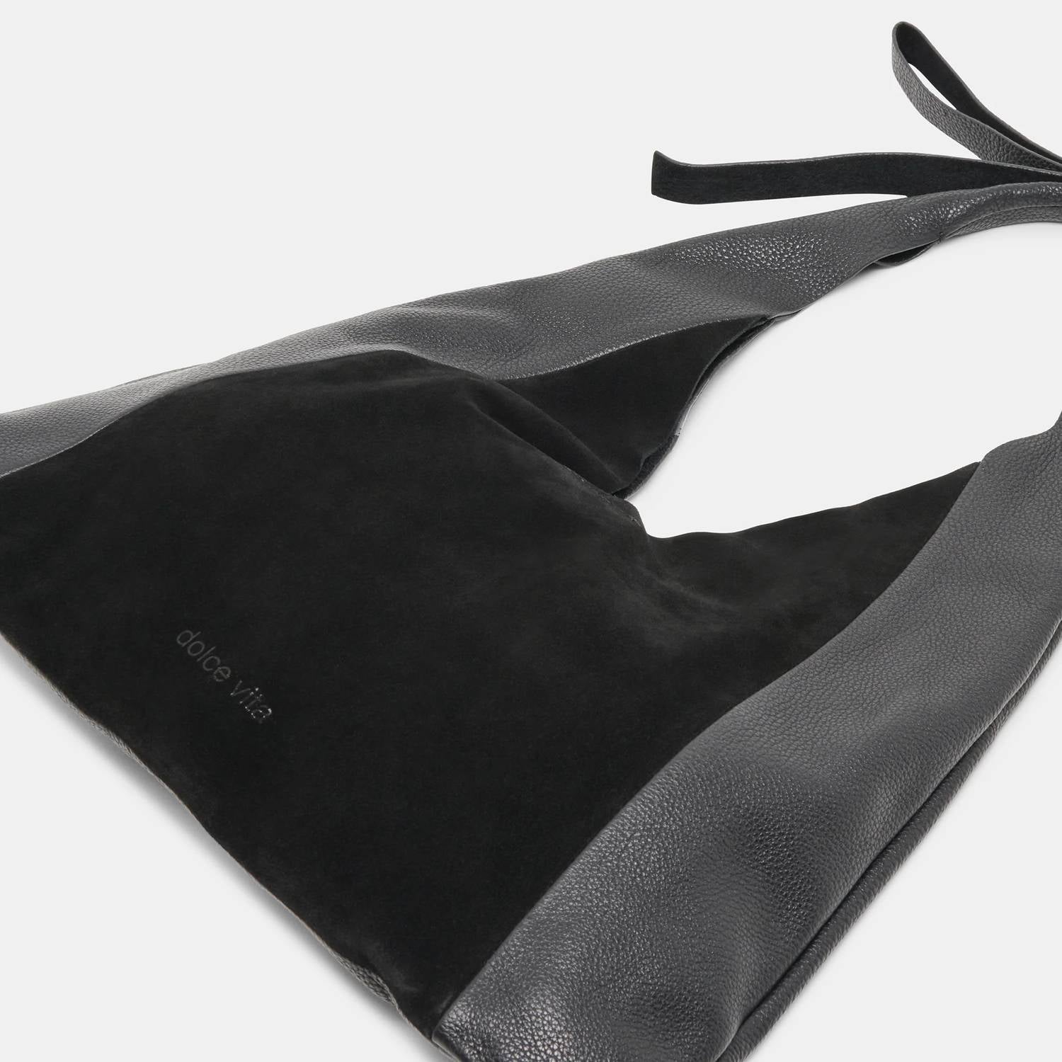 Bonita e casual, esta bolsa hobo é uma das favoritas dos fãs. Uma bolsa tote que esbanja elegância sem esforço. Leve MARIE com você do escritório para reservas de jantar em camurça chocolate intensa, preto clássico ou estampa de oncinha marcante. • Couro Pebble Preto com Acabamento Sintético • Interior em camurça • 9" de altura, 16,5" de largura, 0,8" de profundidade • Fecho magnético • 1 bolso interno com zíper • Queda de 11" na alça