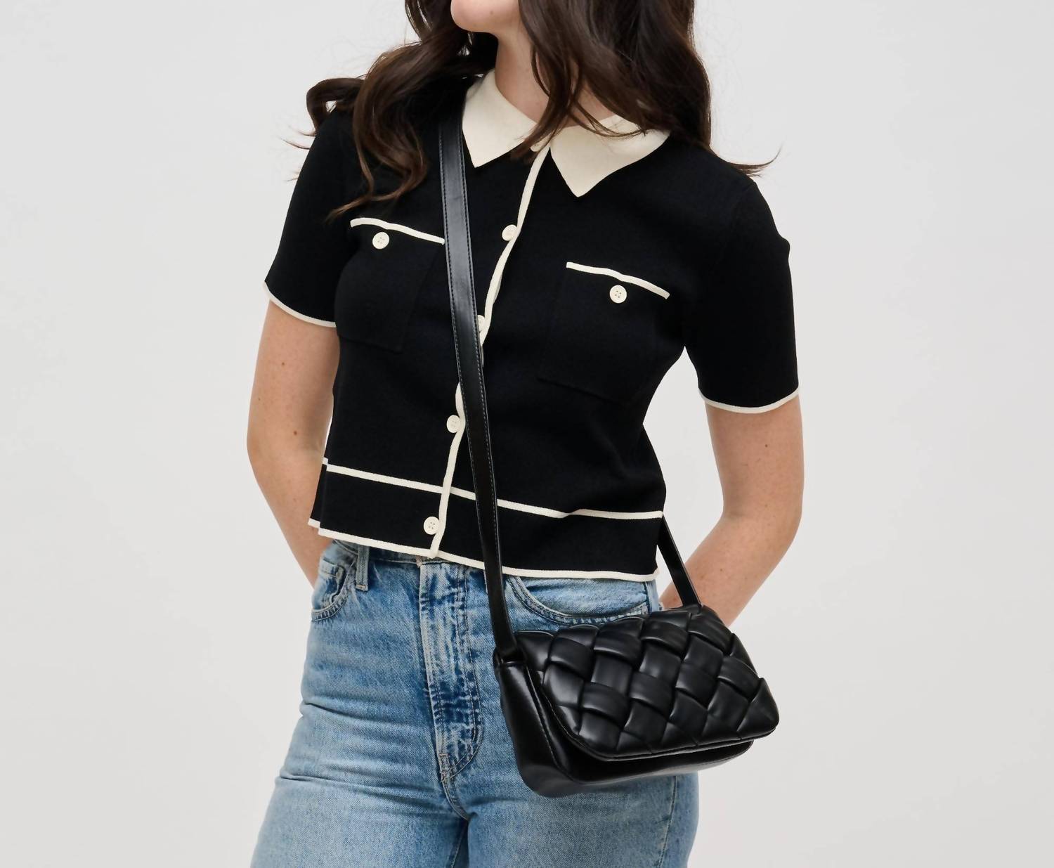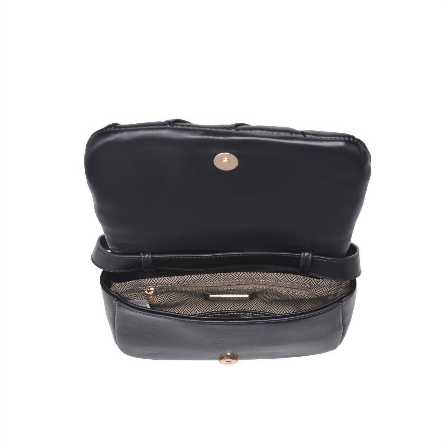 Conheça a bolsa transversal Daphne Woven da Urban Expressions, o epítome do chique descontraído em um design elegante em couro vegano preto. Medindo 22,5 x 7,1 x 14,9 cm, esta bolsa é adornada com ferragens douradas e um exterior trançado, tornando-a uma adição elegante a qualquer conjunto. Ela possui um fecho magnético para maior segurança, além de forro em tecido estampado, e inclui um bolso com zíper e um bolso extra para armazenamento organizado. As alças ajustáveis adicionam versatilidade, garantindo conforto e um ajuste perfeito para qualquer ocasião.