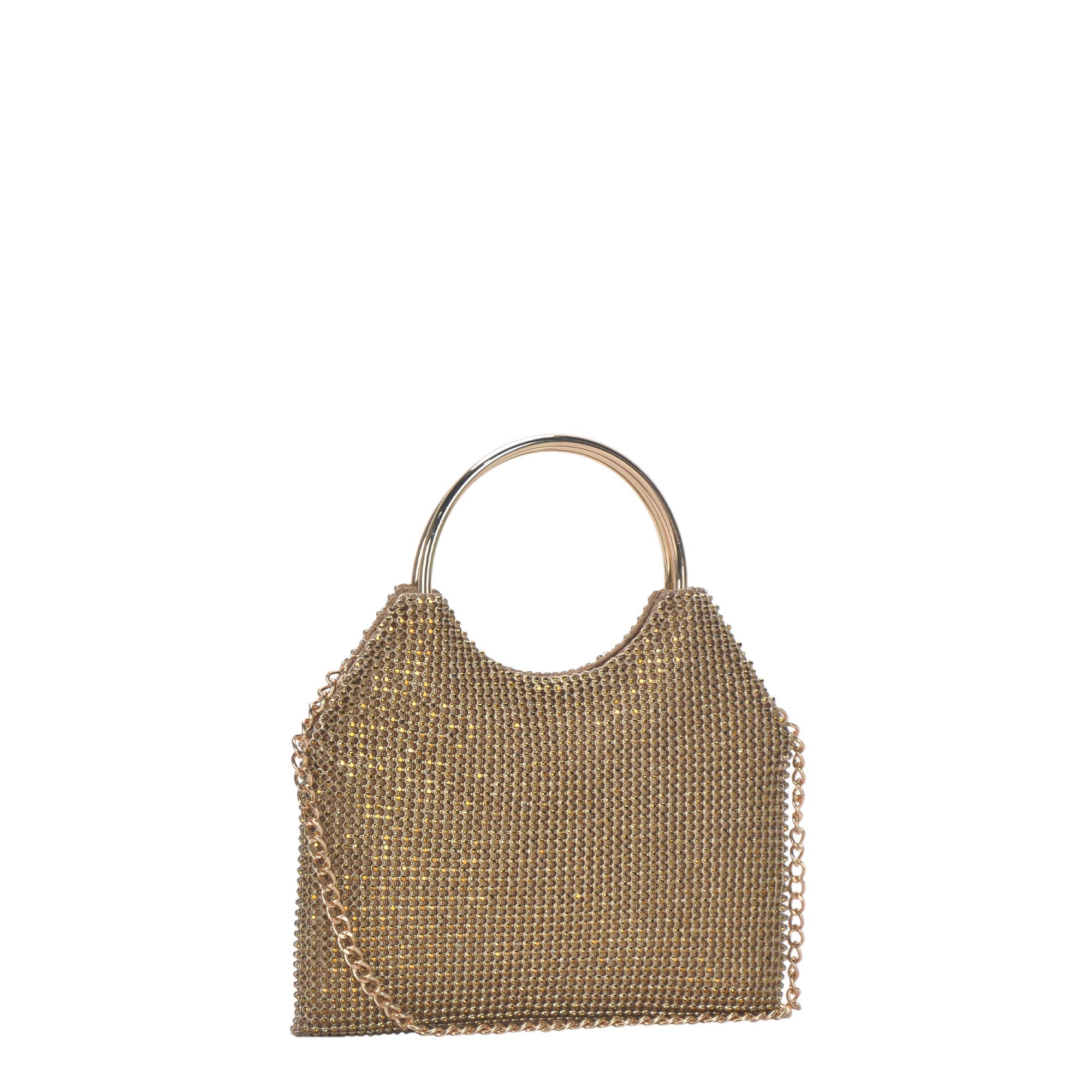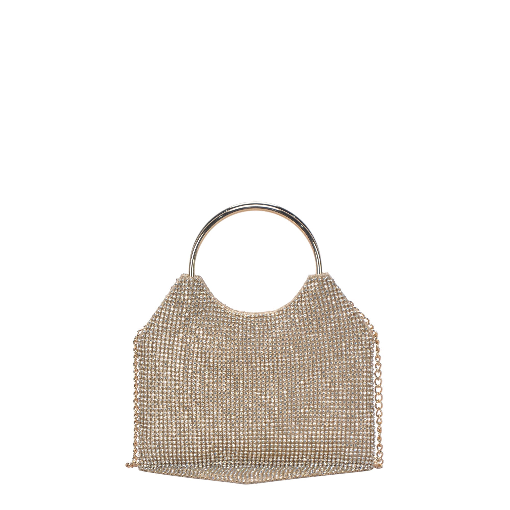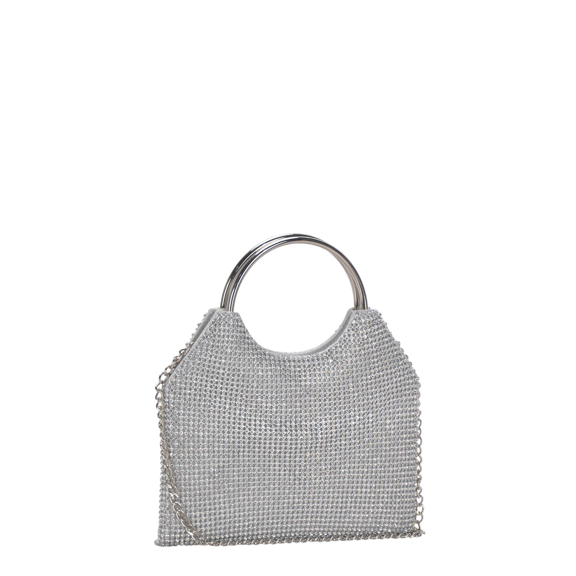 Elevate your evening attire with the luxe and glamorous Valentina ring handle clutch. The chain mesh exterior and detachable chain strap allows you to wear it as a crossbody or as a stylish statement-making clutch. Sparkle and shine your way into the night!