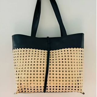 The Winding Road - Cane Weave Tote Medium Leather Trim Bag