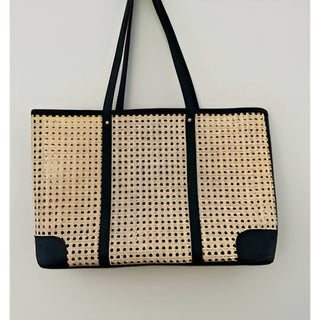 The Winding Road - Cane Weave Tote Oversized Leather Trim Bag