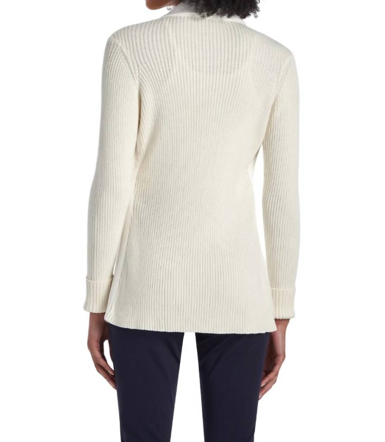 Elástico poderoso com mangas e costas em algodão e cashmere. Tipo de ajuste do blazer: Ajuste ativo. A modelo tem 1,78 m e veste tamanho P. 50% rayon, 45 nylon, 5% elastano. Lavar à máquina com água fria, não usar alvejante, secar na horizontal, passar a ferro em temperatura baixa, se necessário, ou lavar a seco. Importado. Lapelas xale. Mangas longas caneladas. Frente aberta. Fenda nas costas.