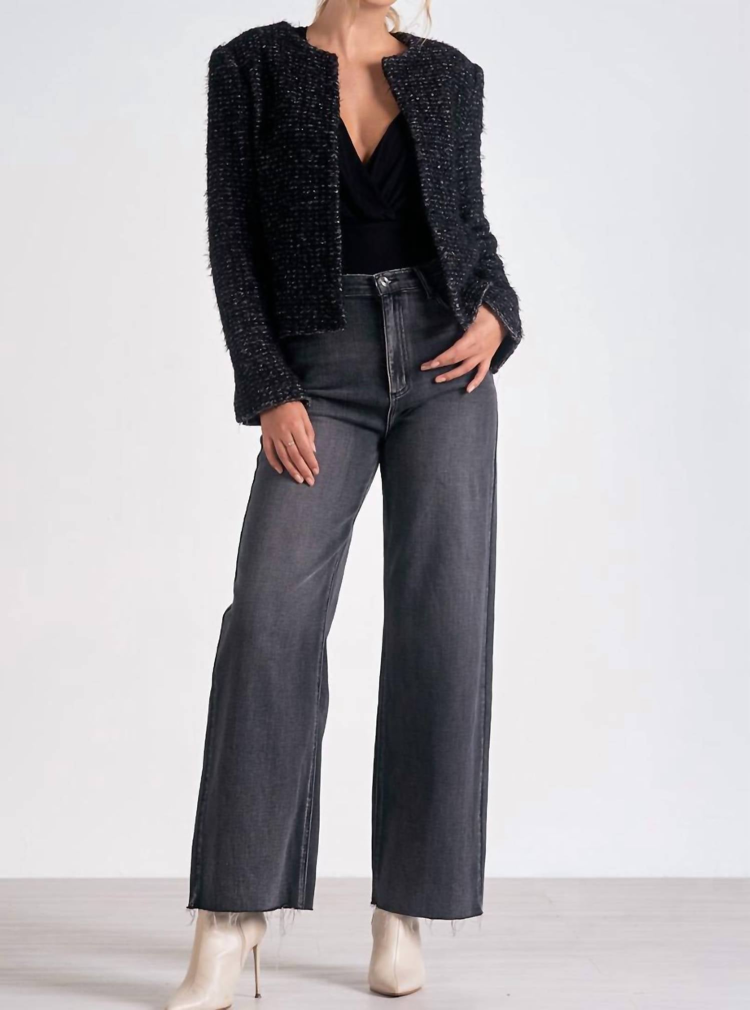 Uma versão elevada do seu blazer clássico favorito. Eleve seu look de trabalho com o Blazer Elan Chanel Inspired da ELAN, uma peça básica e sofisticada em tweed preto e prata com luxuosos detalhes em Lurex. Este blazer possui mangas longas e um design cropped e estruturado que adiciona um toque chique a qualquer conjunto. Confeccionado em uma rica mistura de 44% lã, 44% poliéster, 10% acrílico e 2% lurex, oferece um caimento fiel ao tamanho e um visual elegante. Fecho: colchete. Cuidados: Lavar à mão para melhores resultados.