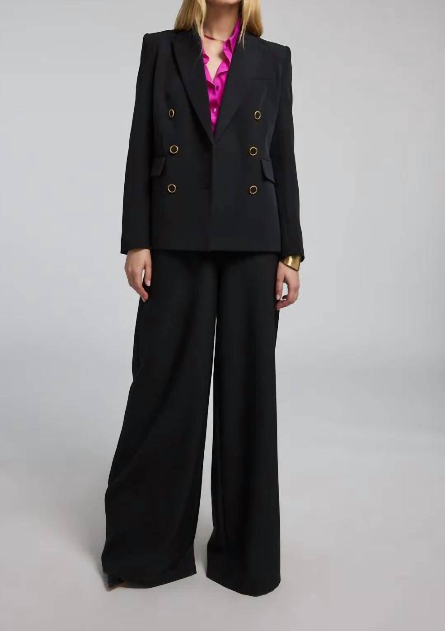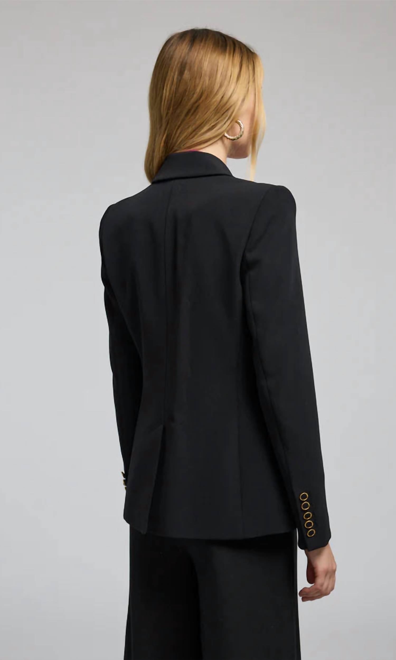 An elevated version of your favorite classic blazer. Meet the Arielle Crepe Blazer by Generation Love, an elegant addition to your evening wardrobe. Featuring long sleeves and crafted from a composition of 95% polyester and 5% elastane, this solid black blazer offers a stylish boyfriend fit and measures 26.25 inches in length. It comes with a button closure and showcases a classic collar, with a thoughtful design of two non-functional flap pockets and a functional welt pocket. Care for this lined blazer with a dry clean to maintain its sophisticated appeal.