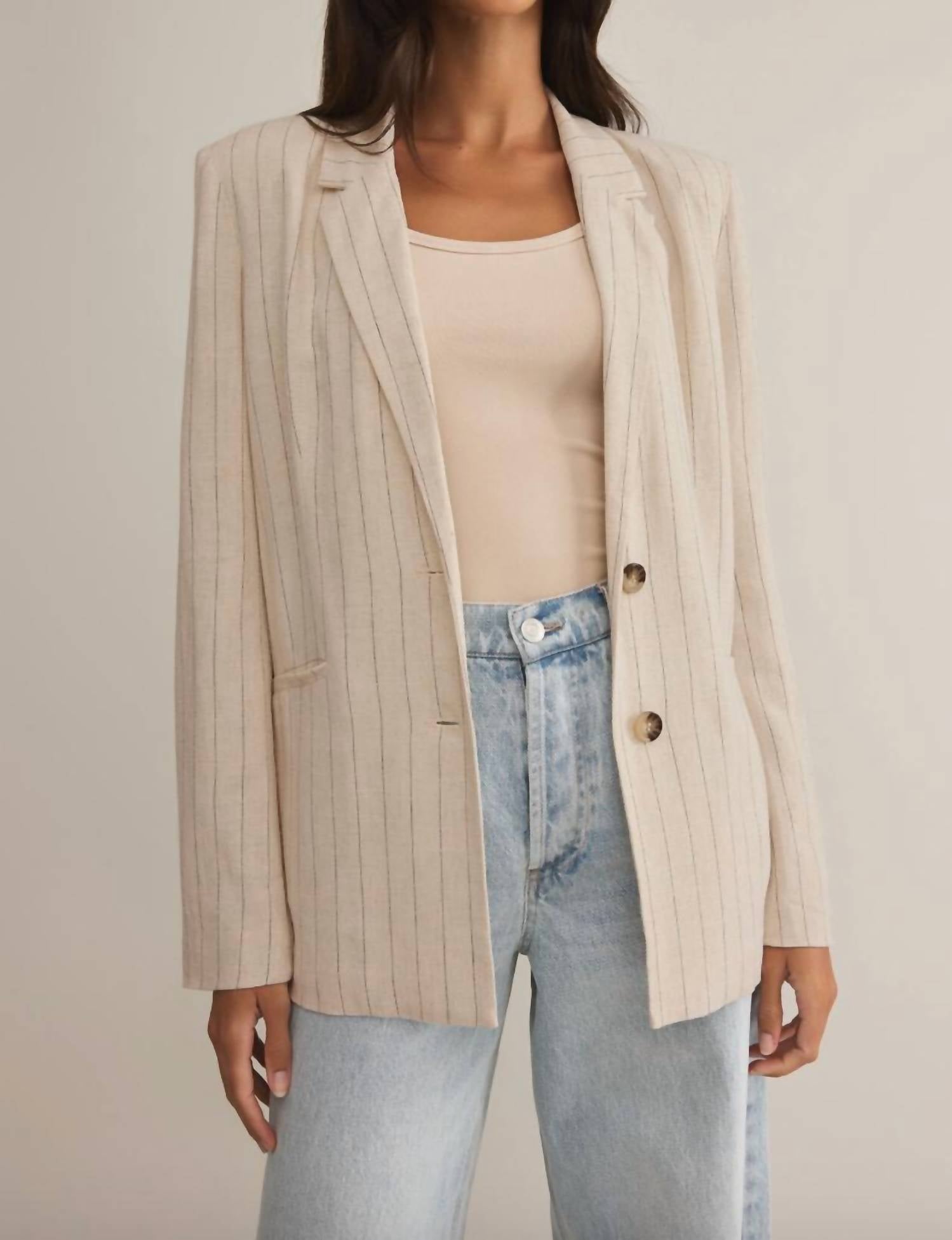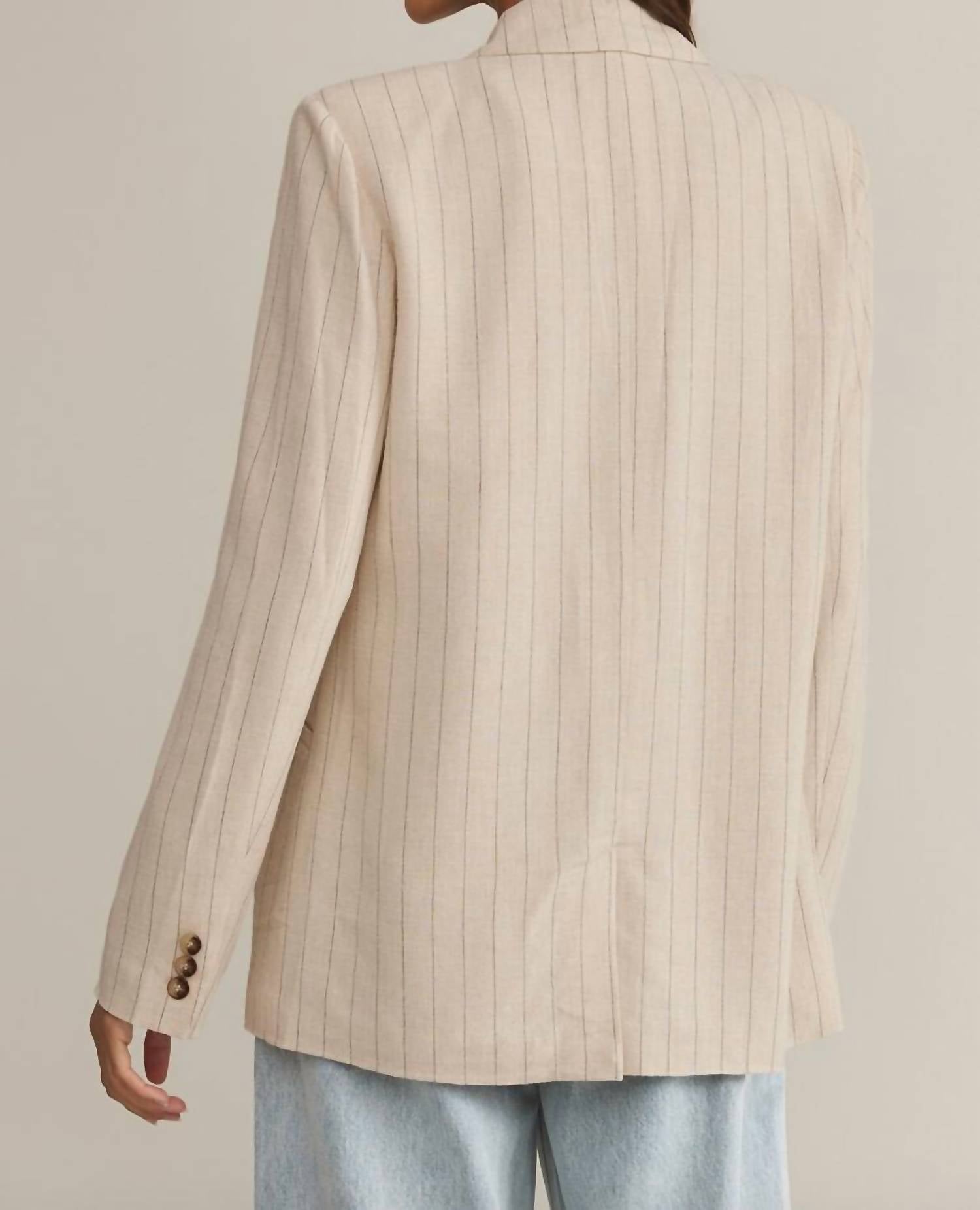 Um blazer tão versátil que você pode usá-lo no escritório ou combiná-lo com jeans para um visual mais casual. Eleve seu visual de trabalho com o Blazer Livingston Pinstripe da Z Supply, feito sob medida para mulheres que apreciam um estilo refinado. Confeccionado com mangas longas e gola clássica, este blazer de caimento relaxado possui fecho frontal por botões e um prático bolso embutido, adicionando um toque funcional. Confeccionado em uma mistura texturizada de 80% Viscose e 20% Linho, oferece um toque de peso médio com uma lavagem suave e pesada, garantindo conforto durante todo o outono. Aposte na estampa de riscas na cor linho para ocasiões sofisticadas, como jantares de Ação de Graças.
