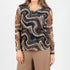Elevate your wardrobe with the Women's Bella Sheer Sleeve Top from Made in Italy, embodying boho chic style in a patterned Biscot Erosion hue. This lightweight mesh blouse features long sheer sleeves and a flattering V-neckline with an artistic swirl pattern in earthy tones. Crafted from 100% polyester, the top offers a pull-on closure and is ideal for summer vacation occasions. Model Faryn, 5'6" tall with measurements of 34" bust, 28.5" waist, 31" hip, showcases this size small top.