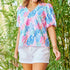 Elevate your vacation wardrobe with the Kenzie Top by Mary Square, showcased in a captivating Coral Cove Royal hue. This women's blouse is crafted with short bubble sleeves featuring elastic cuffs and is made from 95% Polyester and 5% Spandex, offering a flowy fit that reflects a perfect blend of comfort and contemporary style. Closure is a convenient pull-on design, while care instructions recommend machine washing cold with like colors and line drying. Its charming patterned design and flattering V-neckline make it a preppy summer essential.