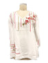 Introducing the Women's Embroidered Viscose Hanky Hem Top by PAPARAZZI, a boho chic blouse in a stunning white and red colorway. Designed with long sleeves and crafted entirely from 100% viscose, this top showcases intricate rose motifs and geometric stitch detailing. The V-neckline and delicate lace trim at the hanky hem complete its soft, feminine finish. Originating as a pull-on style, it is best maintained by hand washing.