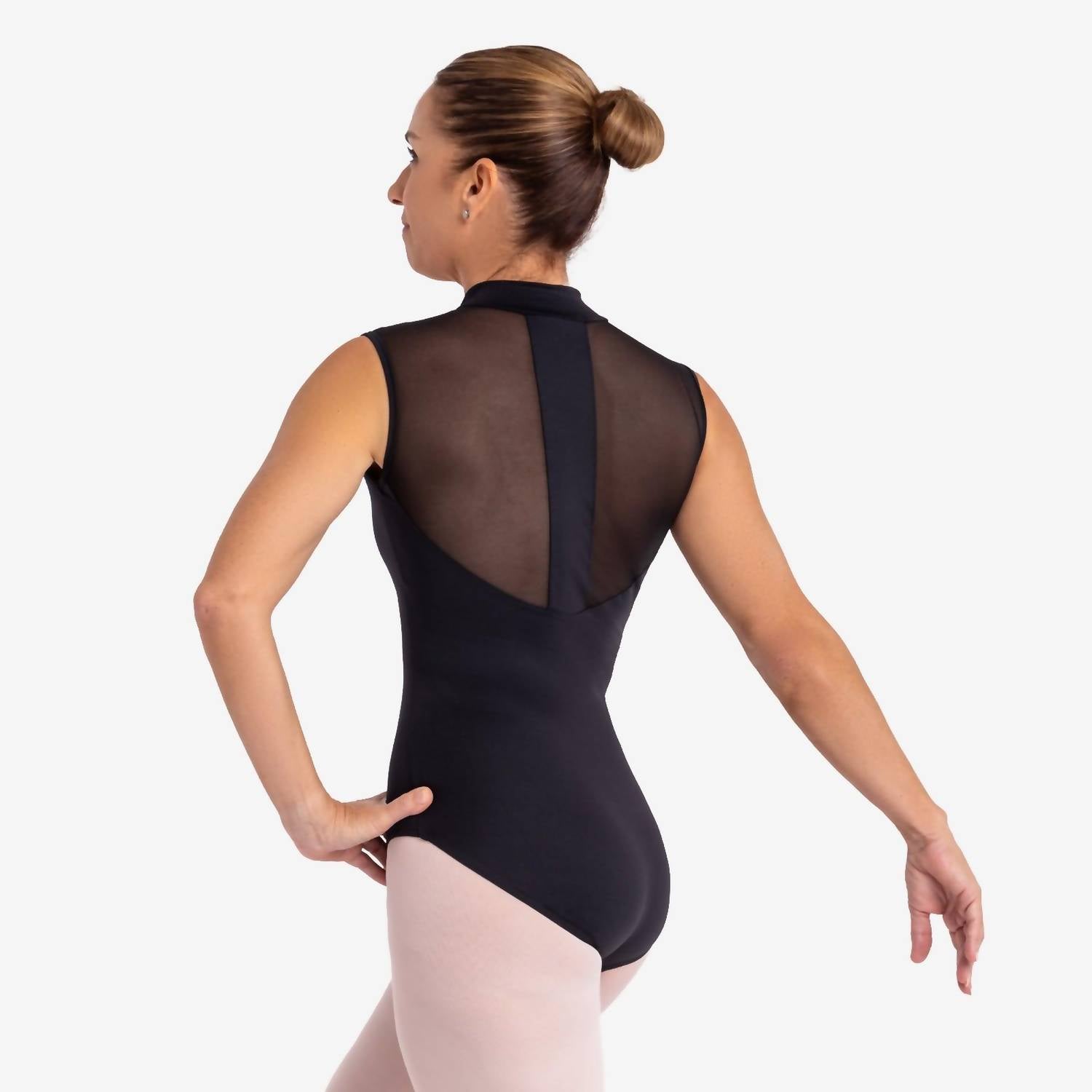 Who doesn't love a good bodysuit? Meet the Karin Leotard by So Danca, a sleek and sophisticated option for dancers who appreciate both style and functionality. This sleeveless leotard in solid black features a modern V-neck and a convenient zip closure, adding an elegant touch to your dance wardrobe. Crafted from a blend of microfiber and mesh spandex, it promises comfort and a flattering fit. Designed for curvy figures, it offers more room in the bust and hips while maintaining the same length.