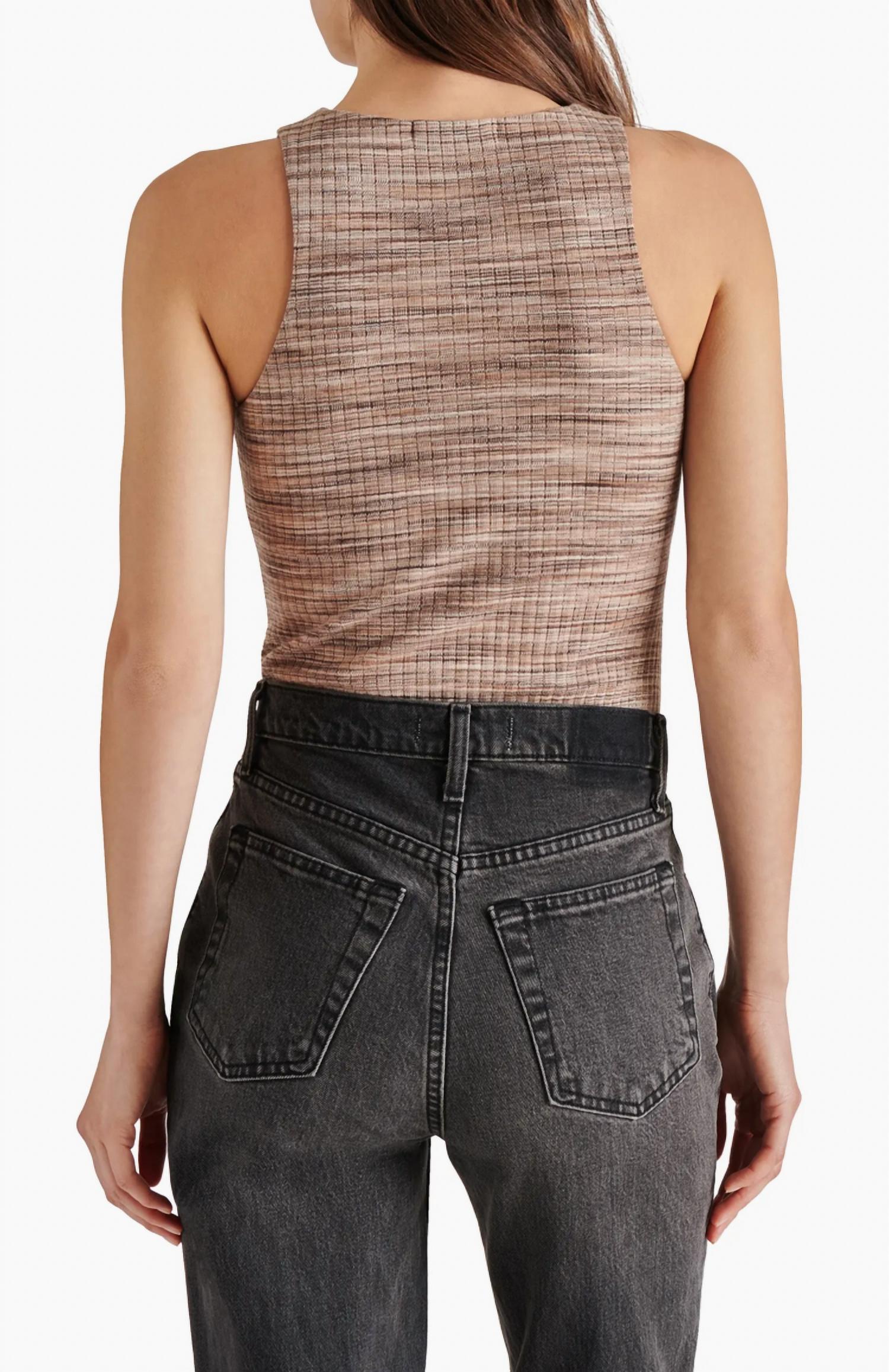 Quem não ama um bom body? Combina estilo e conforto sem esforço. Apresenta uma estampa multicolorida. Design de regata. Silhueta elegante e moderna. Silhueta sem mangas. Fecho de pressão. Gola joia. Ombros com recortes. 60% algodão. 40% poliéster reciclado. Lavar à mão. Secar na horizontal.