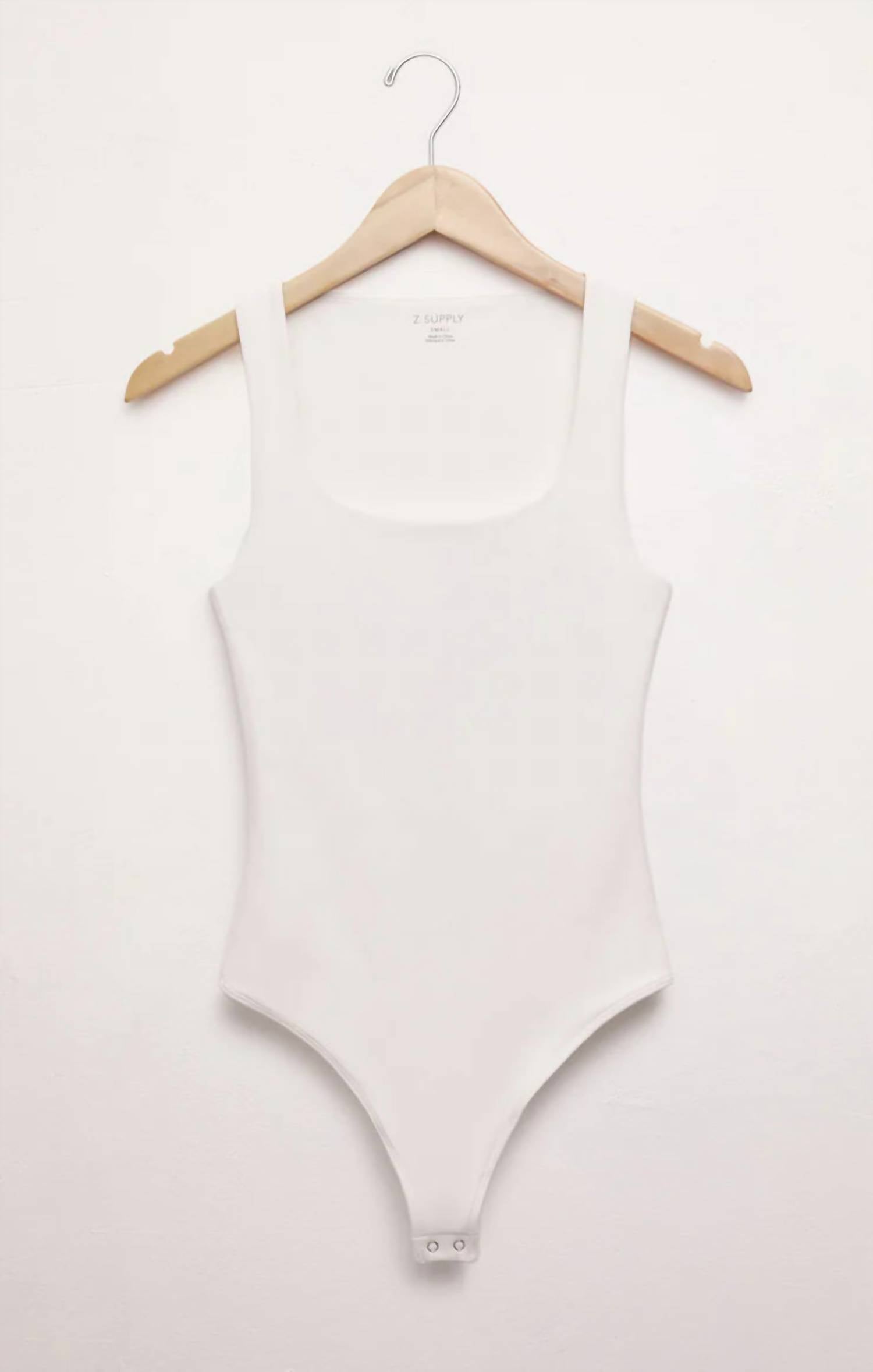 Our newest elevated bodysuit! The fully lined Alana So Smooth Tank Bodysuit is made using our So Smooth Jersey fabric that creates a clean finish, smooth lines, and is fitted to the body. With more of a square neckline and thicker straps. It has a snap closure. Machine wash cold, turn inside out, gentle cycle, wash with like colors, do not bleach, hang to dry, warm iron if needed. So Smooth Jersey: 80% Nylon 20% Spandex. Slim Fit. Model is wearing a size S. Model: Height: 5' 9" Bust: 31" Waist: 24" Hips: 34"