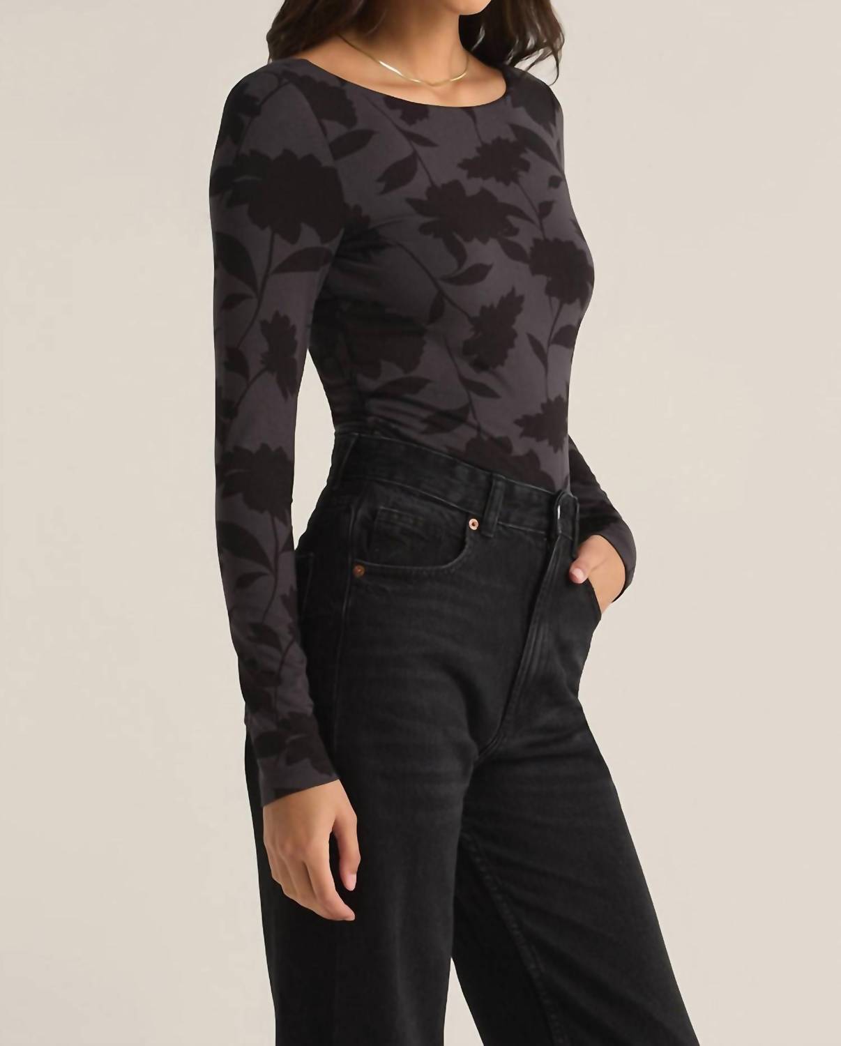 Combine este número com seu jeans de cintura alta favorito. Apresentamos o Body Baela Shadow Floral da Z Supply, uma adição chique ao seu guarda-roupa com seu design preto elegante. Este body possui mangas compridas e gola redonda clássica, confeccionado em malha canelada de peso médio com 90% rayon e 10% elastano para um caimento perfeito. Com costas decotadas ousadas e fecho de pressão, oferece uma cobertura atrevida, perfeita para usar em camadas. As instruções de cuidado incluem lavagem à máquina e secagem na horizontal.