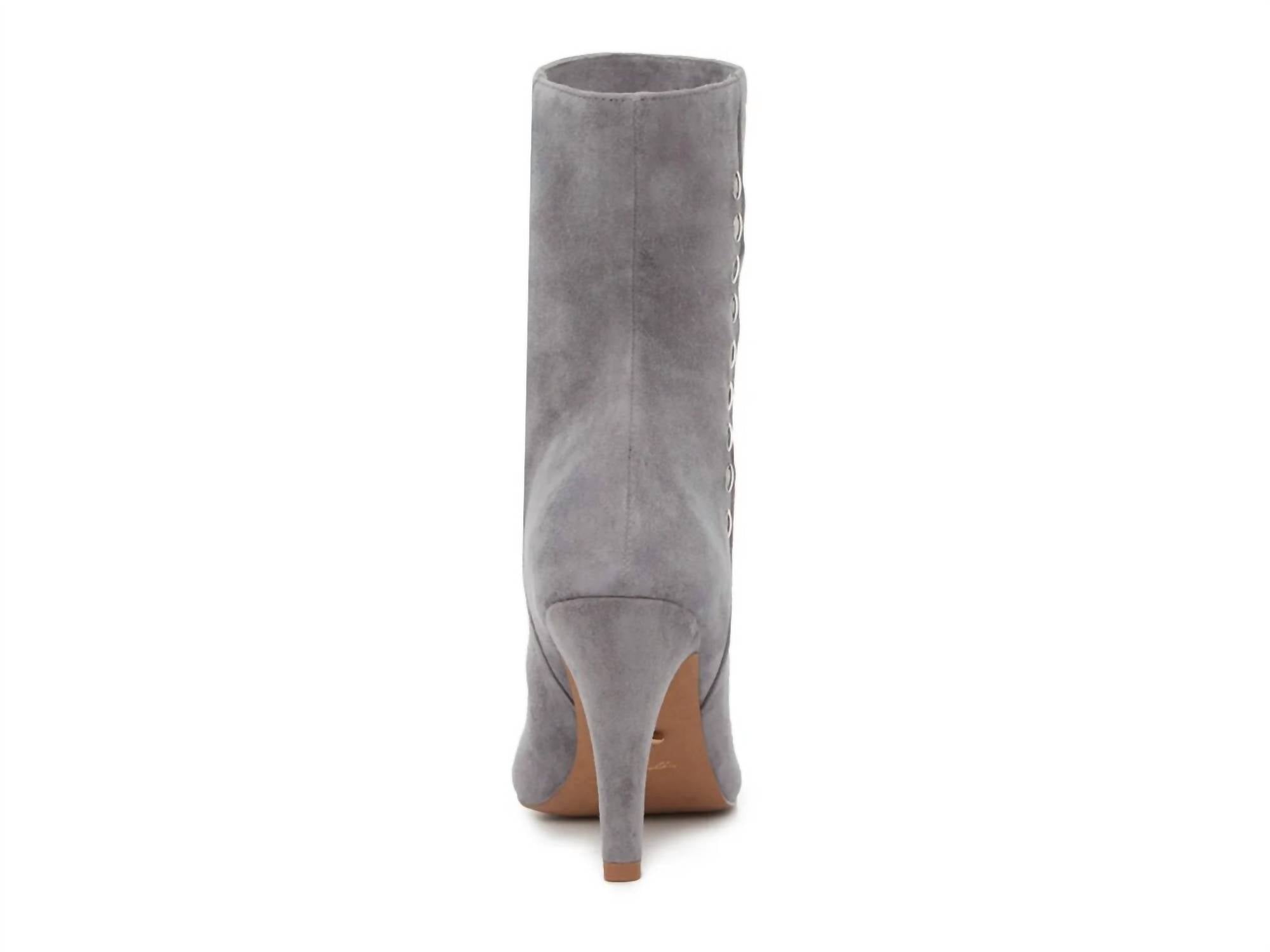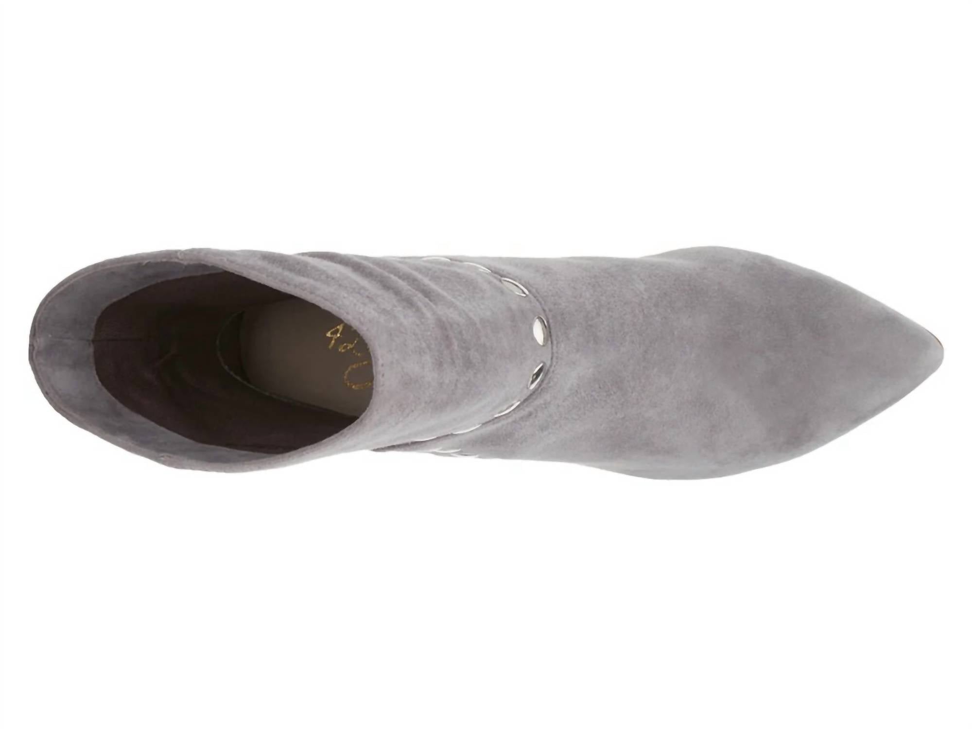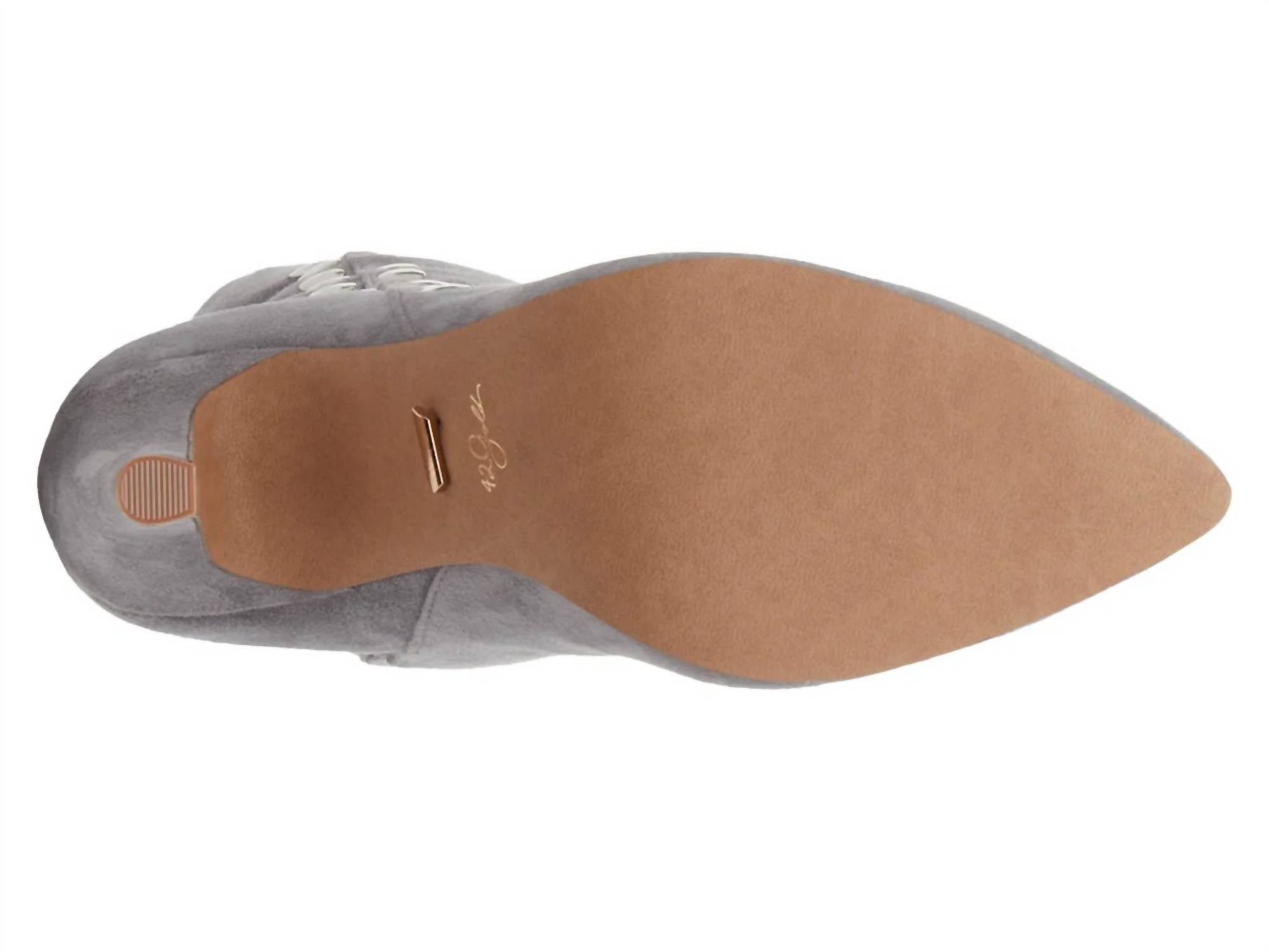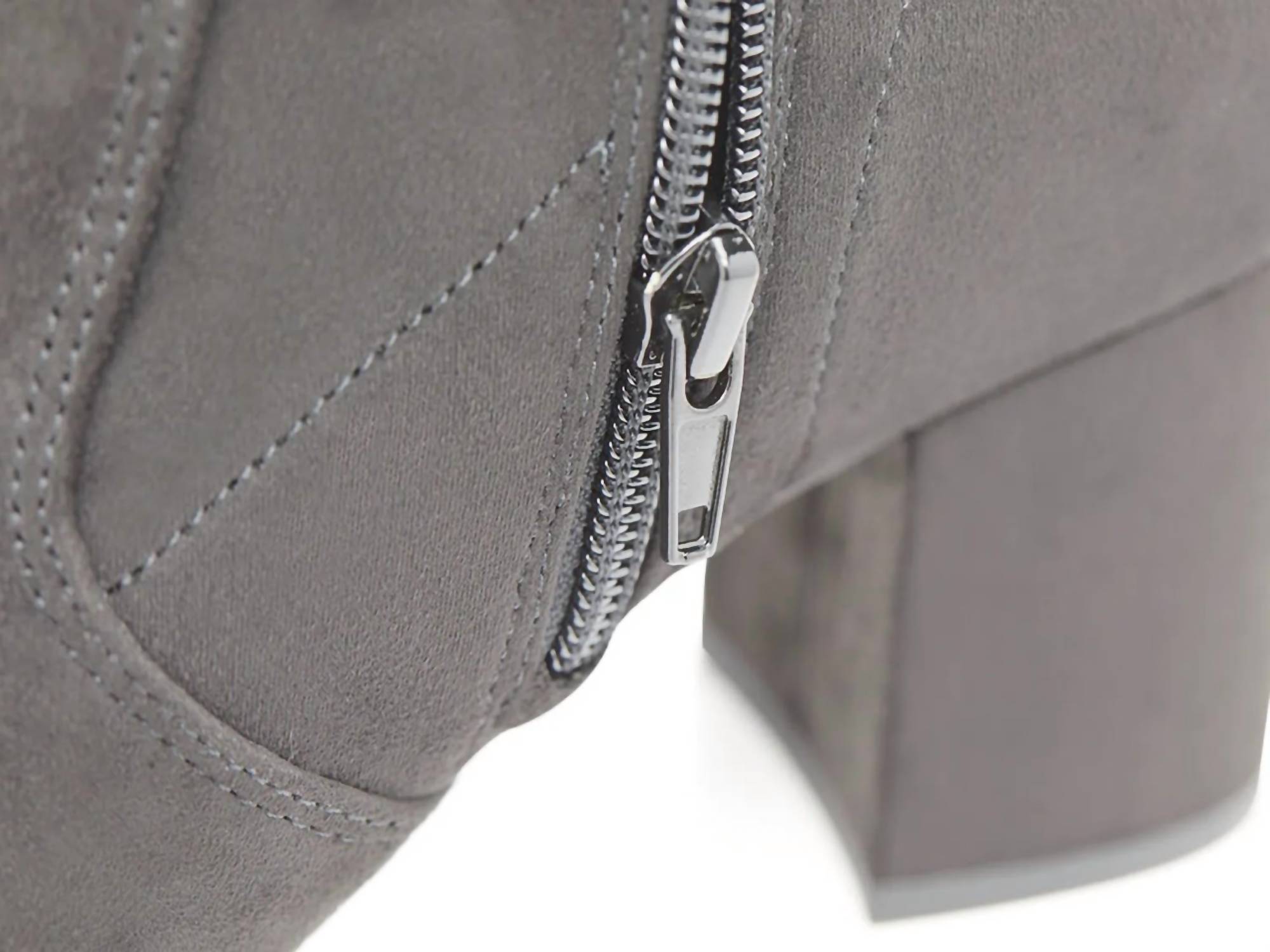 Diga olá à bota perfeita e mais versátil. A altura do tornozelo facilita a transição do dia para a noite. Use-a com sua calça jeans skinny favorita e camiseta para um look mais descontraído, ou combine-a com seu minivestido e jaqueta favoritos para uma saída à noite. Eleve seu guarda-roupa com a Bota Feminina de Camurça Konnie da 42 Gold, com um elegante cabedal de camurça até a panturrilha em um sofisticado tom cinza. Desenhada com bico fino e salto cone coberto de 3,75", esta bota equilibra elegância e conforto perfeitamente. Importada com artesanato especializado, ela ostenta detalhes exclusivos de tachas prateadas e costuras aparentes para um toque ousado. Com fecho de pressão e solado sintético, oferece praticidade aliada ao seu design marcante.