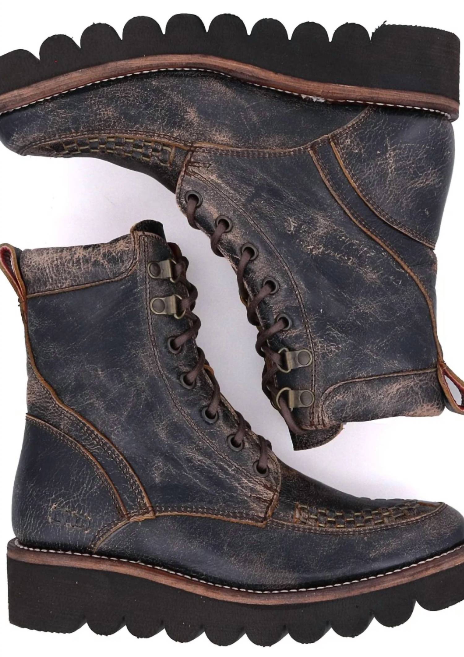 Step into timeless style with the Women's Elisha II Leather Boot by BEDSTU, expertly crafted for a rugged yet luxurious look. These ankle boots feature a black leather composition with a round toe shape and a distinctive weathered finish, complemented by tie shoelaces. Perfect for spring concerts or Thanksgiving gatherings, the low heel of 1 1/4"-2" inches adds comfort and trend-worthy Western flair to your ensemble. A must-have for those who appreciate artisan craftsmanship and classic design.