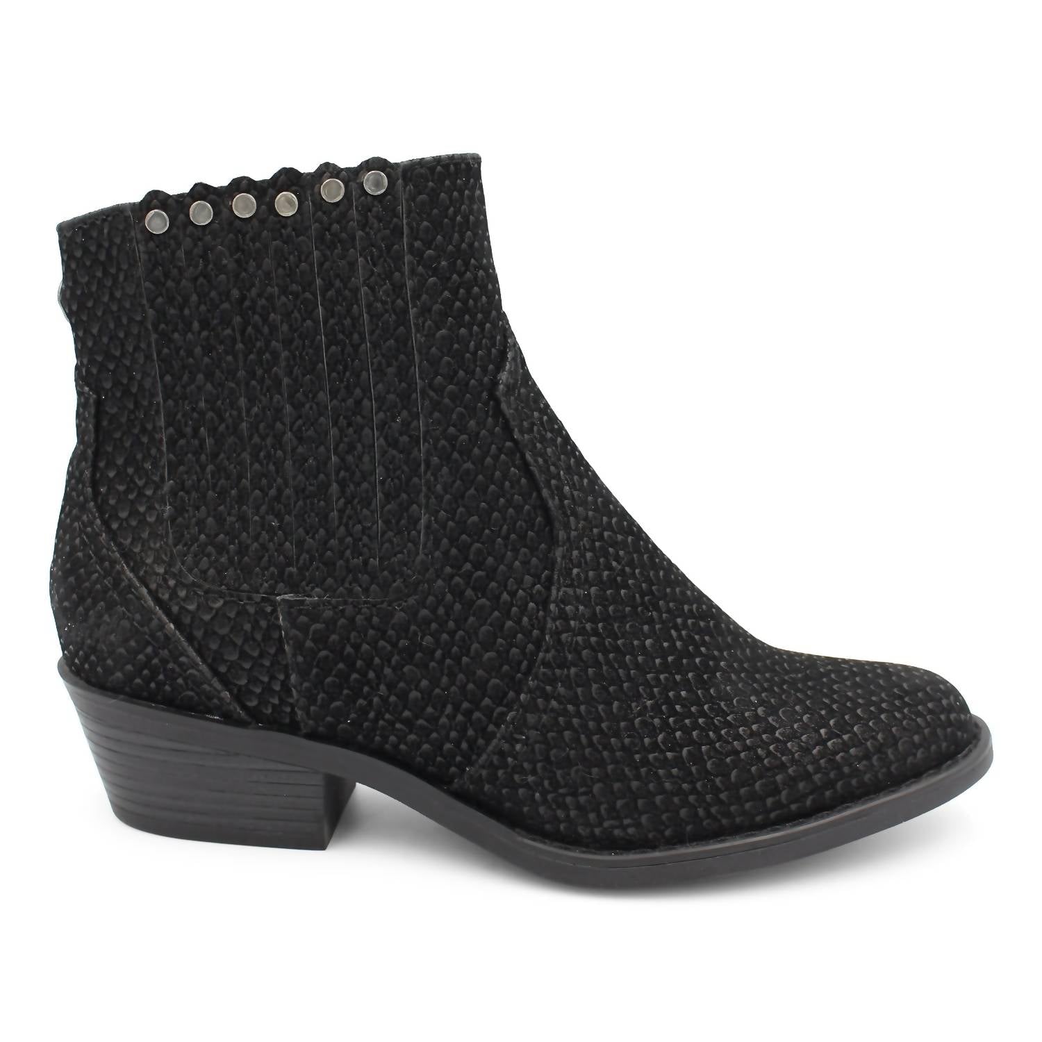 Com salto alto e detalhes em tachas com um toque country, o modelo conta com zíper interno para calçar e descalçar com facilidade e palmilha acolchoada.