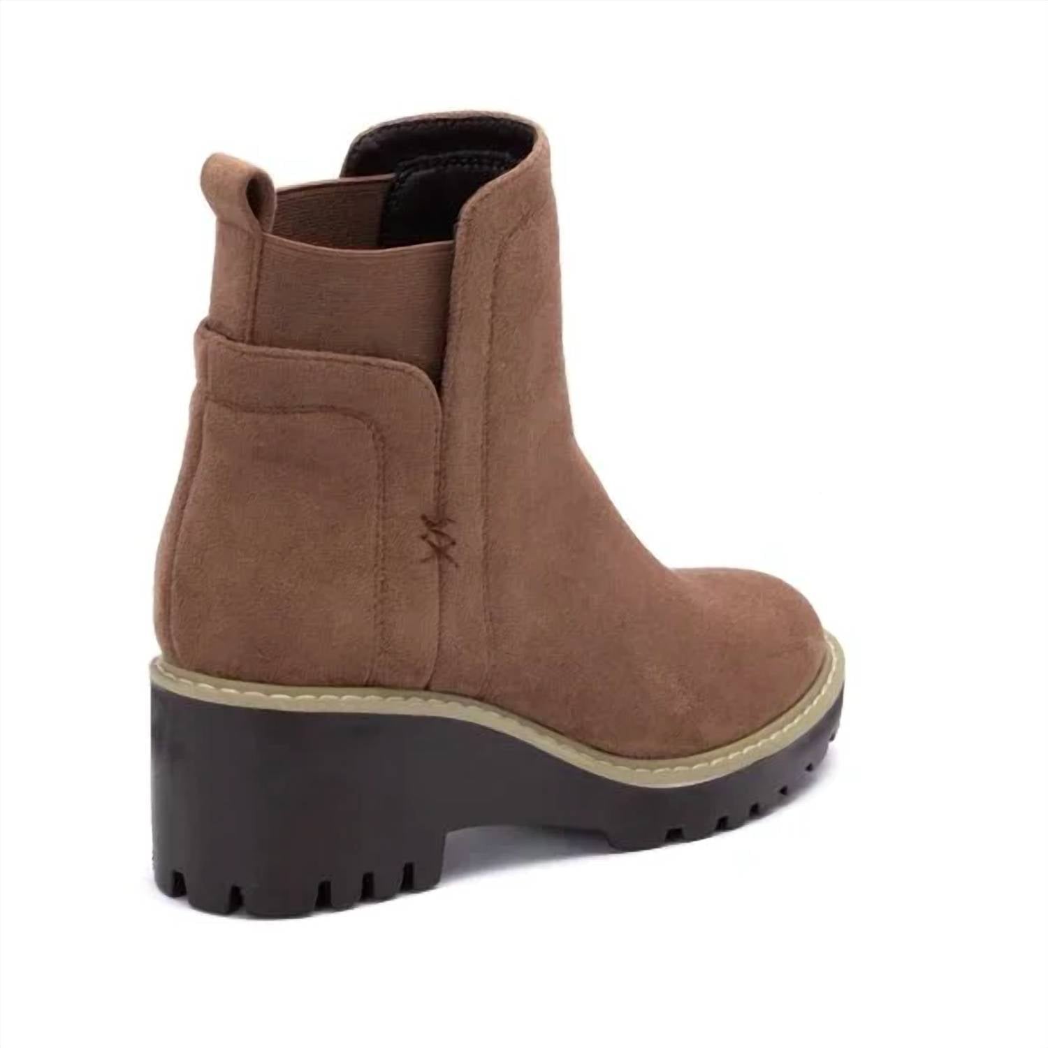 Botas básicas de cano curto em camurça Camel. Estas botas estilo combate oferecem um visual atemporal, porém ousado, com sola de borracha resistente, palmilhas de EVA acolchoadas, bico arredondado e salto de 6,3 cm para um ajuste confortável. O cabedal sintético e a lateral em tecido elástico garantem uma sensação leve e um ajuste fácil, perfeito para dias agitados. Projetadas para se ajustarem perfeitamente ao tamanho, estas botas proporcionam um conforto macio.