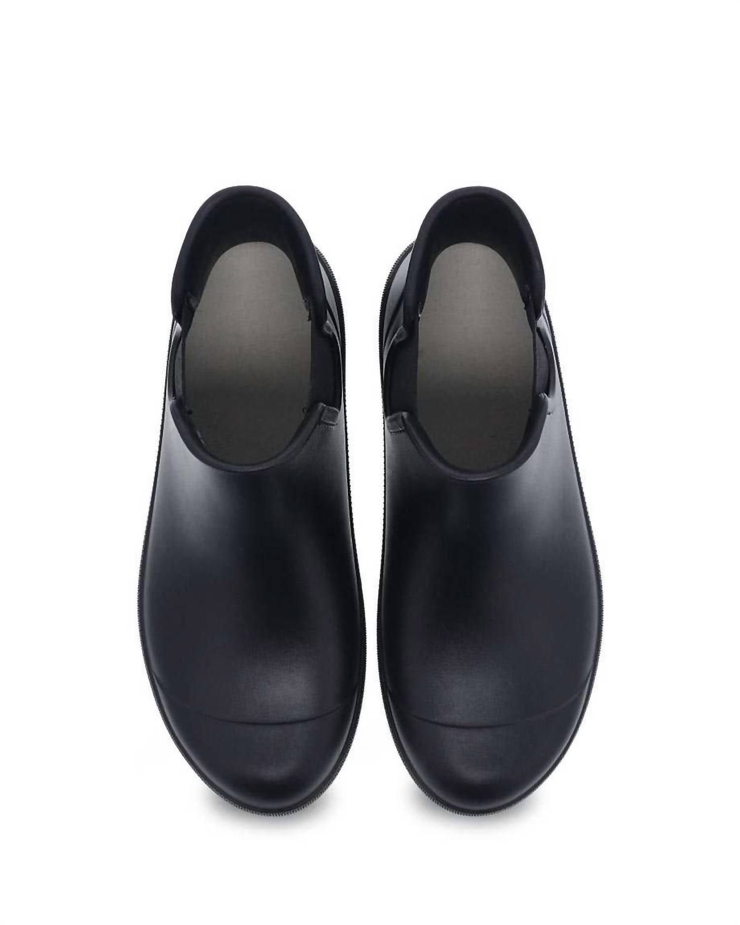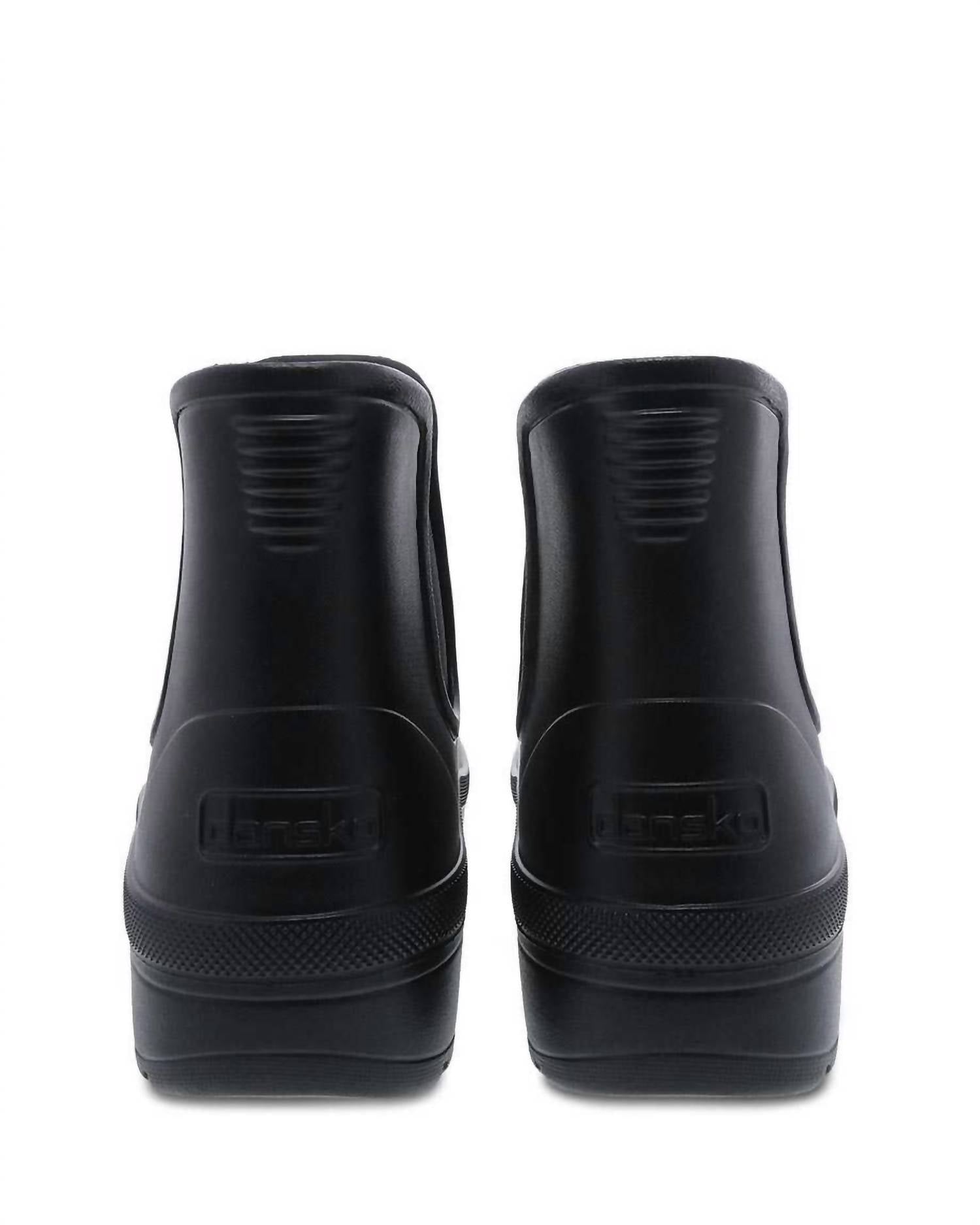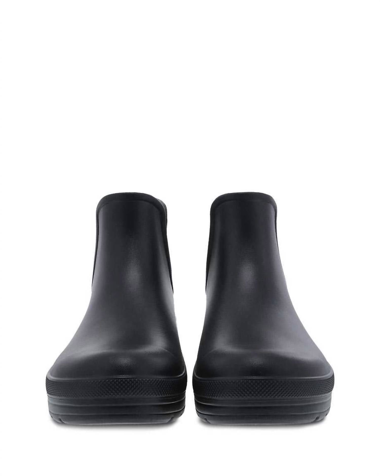 Meet the Women's Karmel Boot by Dansko, a minimalist masterpiece in Molded Black designed with a focus on comfort and durability. Featuring a waterproof construction with I'm green™ bio-based EVA, these ankle boots are not only lightweight but also exceptionally durable. They come with a removable EVA footbed incorporating Dansko Natural Arch® technology for optimal support and a textile footbed cover treated with Aegis® Microbe Shield for odor control. Ideal for a dinner party occasion, these round toe boots have strategically placed rubber outsole pads for enhanced durability.