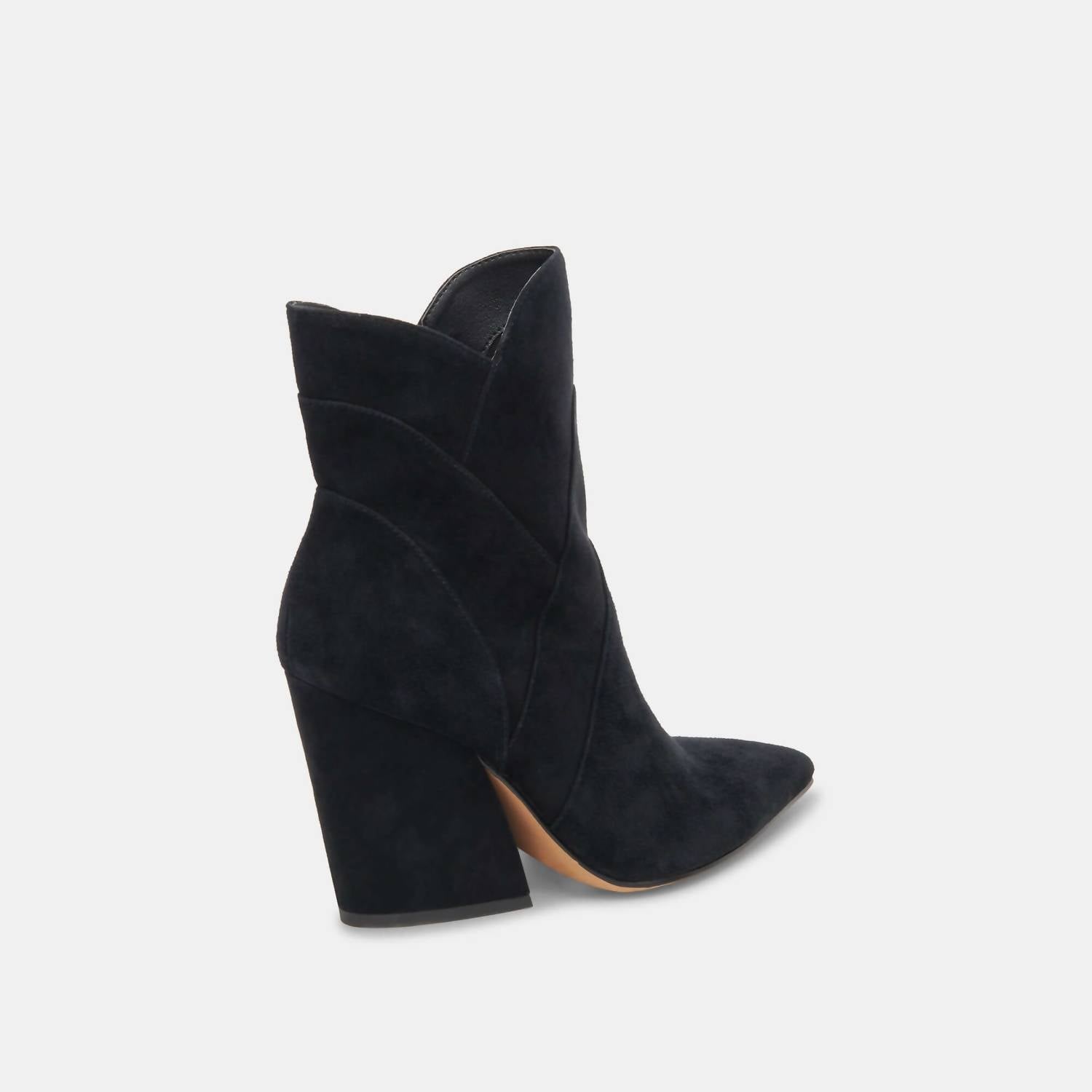 Diga olá à bota perfeita e mais versátil. A altura do tornozelo facilita a transição do dia para a noite. Use-a com sua calça jeans skinny favorita e camiseta para um look mais descontraído, ou combine-a com seu minivestido e jaqueta favoritos para uma saída à noite. Entre na estação com as Botas de Salto de Camurça da Dolce Vita, que oferecem um toque chique de colorblocking preto. Com cabedal de camurça e salto bloco diferenciado de 9,1 cm, estas botas apresentam uma silhueta moderna com seu design de bico fino. Desfrute de elementos ecológicos, como o solado sintético reciclado e o forro têxtil, enquanto o cano de 18,5 cm de altura e a circunferência da perna de 27,7 cm proporcionam um ajuste confortável.