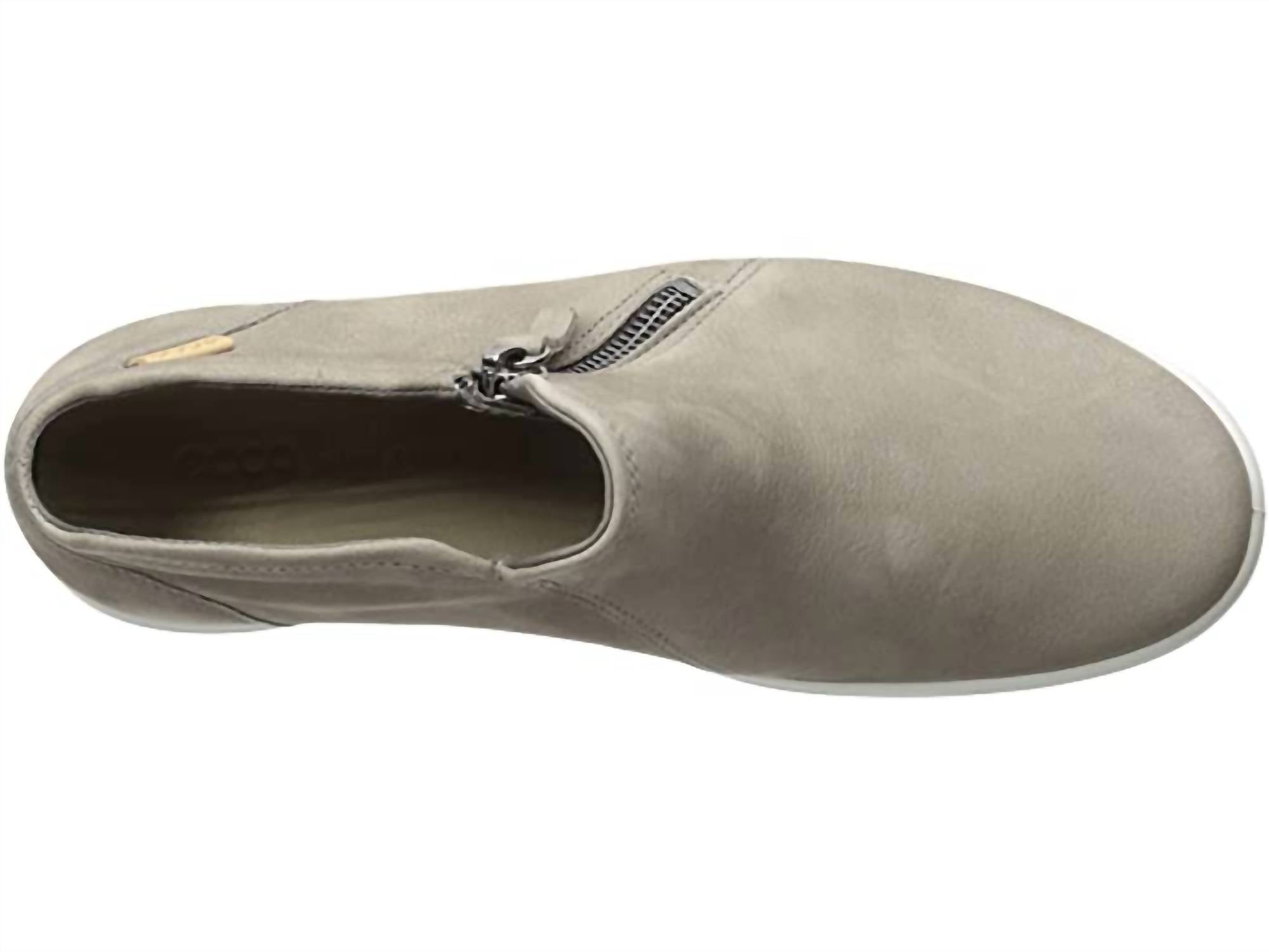 Elevate your spring footwear collection with the ECCO Women's Soft 7 Zip Bootie in Warm Grey Powder. Designed for easy slip-on wear, these minimalist booties feature a soft leather upper complemented by dual zip closures. Crafted with a flat heel and round toe shape, they're perfect for dinner parties and beyond. Embrace Scandinavian style with ECCO's renowned craftsmanship.