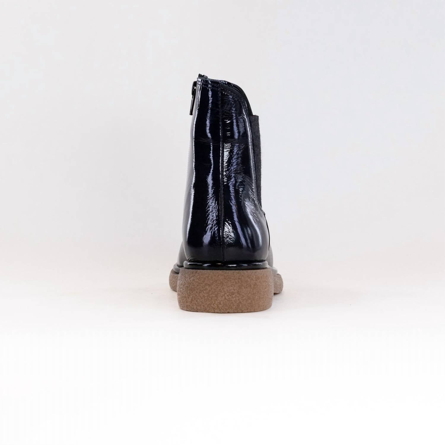 Say hello to the perfect, most versatile boot. The ankle height makes this style easily transition from day to night. Wear them with your favorite skinny jeans and tee for a more laid back look, or pair them with your favorite mini dress and jacket for a night out on the town. Step into elegance with the Women's Garda Boot by Eric Michael in a sophisticated navy hue. Designed for discerning tastes, this ankle boot features a timeless round toe and a sleek block heel for quiet luxury. Perfect for evening events in the fall season, these boots promise comfort with their medium width. Made with care and attention to every detail, they're a must-have addition to your chic footwear collection.