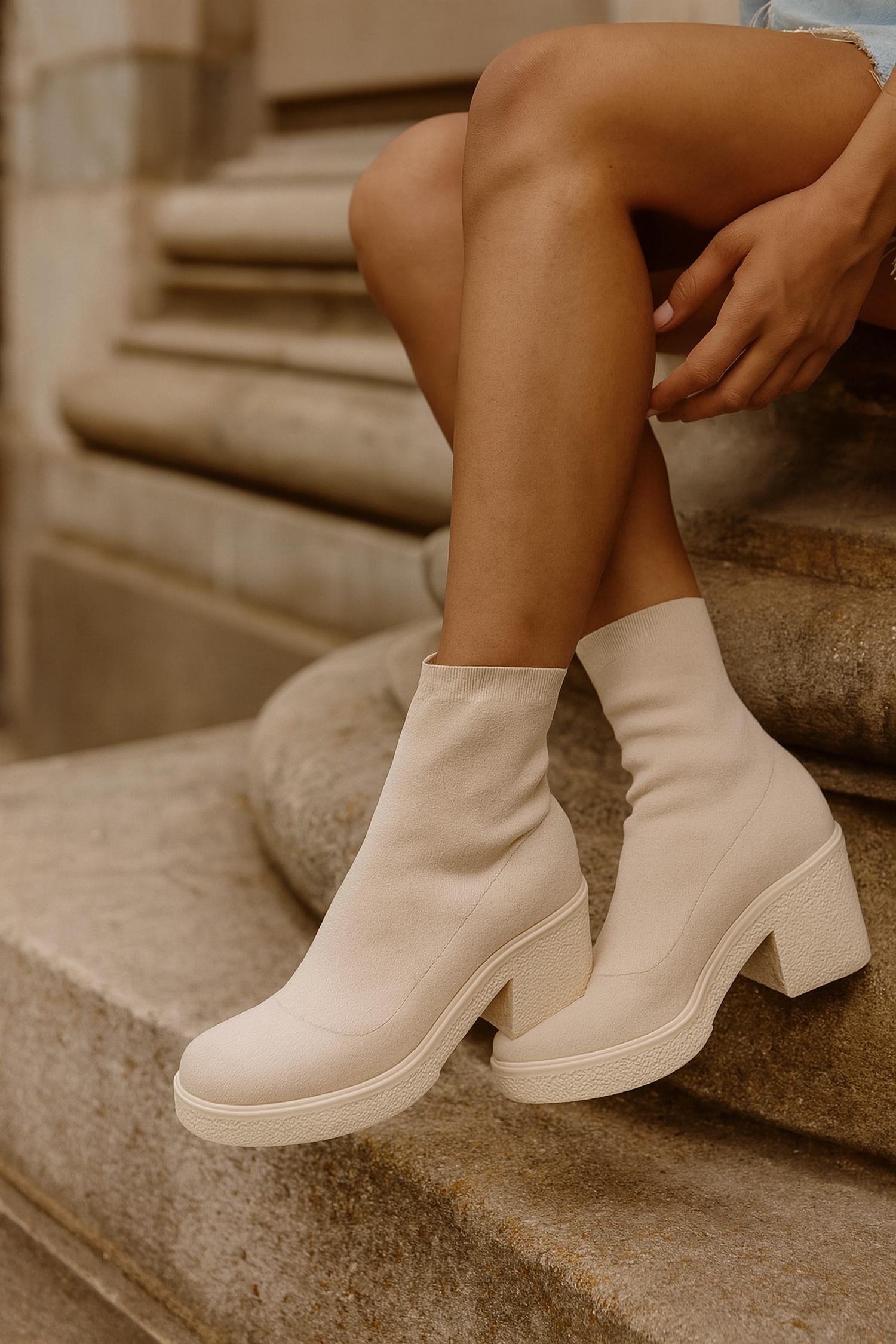 Step into effortless style with the Women's Stretch Sock Knit Chunky Platform Booties by Everglades, crafted from stretchy knit material in a sophisticated taupe hue. These ankle boots feature a sleek, sock-like fit that conforms to your foot, complemented by a chunky block heel and platform sole for added height and stability. Perfect for pairing with jeans, skirts, or dresses, they effortlessly transition from everyday wear to a night out. Designed for trendsetters, these versatile booties embody a chic minimalist aesthetic.