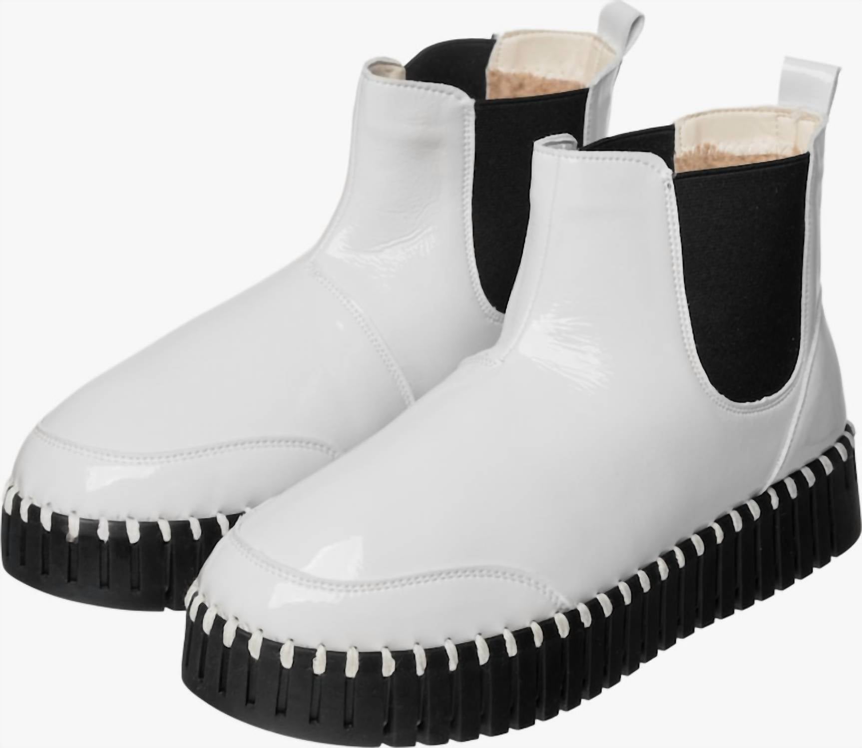 Entre no estilo sem esforço. Com um design minimalista em couro sintético, perfeito para viagens de Ação de Graças. As botas de cano curto se destacam pelo seu elegante bloco de cores em acabamento laqueado e um confortável salto plataforma raso de 2,5 cm. Confeccionadas em poliamida (Nylon®) e poliuretano no cabedal, com forro sintético e solado de borracha natural, prometem durabilidade e estilo. Ideais para o outono e equipadas com bico arredondado, são uma adição estilosa a qualquer guarda-roupa.