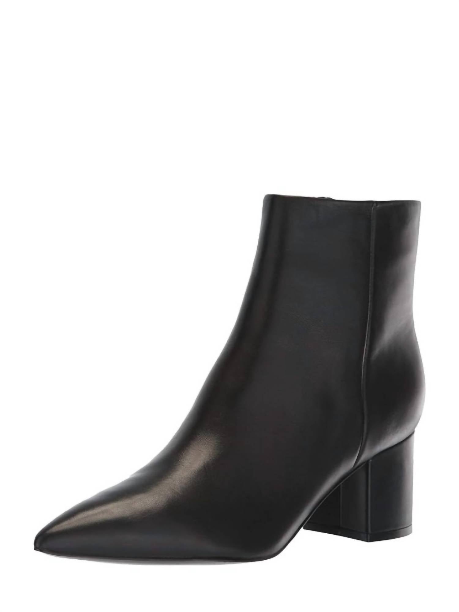 Diga olá à bota perfeita e versátil. A altura do tornozelo facilita a transição do dia para a noite. Use-a com sua calça jeans skinny favorita e camiseta para um look mais descontraído, ou combine-a com seu minivestido e jaqueta favoritos para uma saída à noite. As botas têm bico fino e salto bloco envolto. Fechamento em zíper. 100% couro.