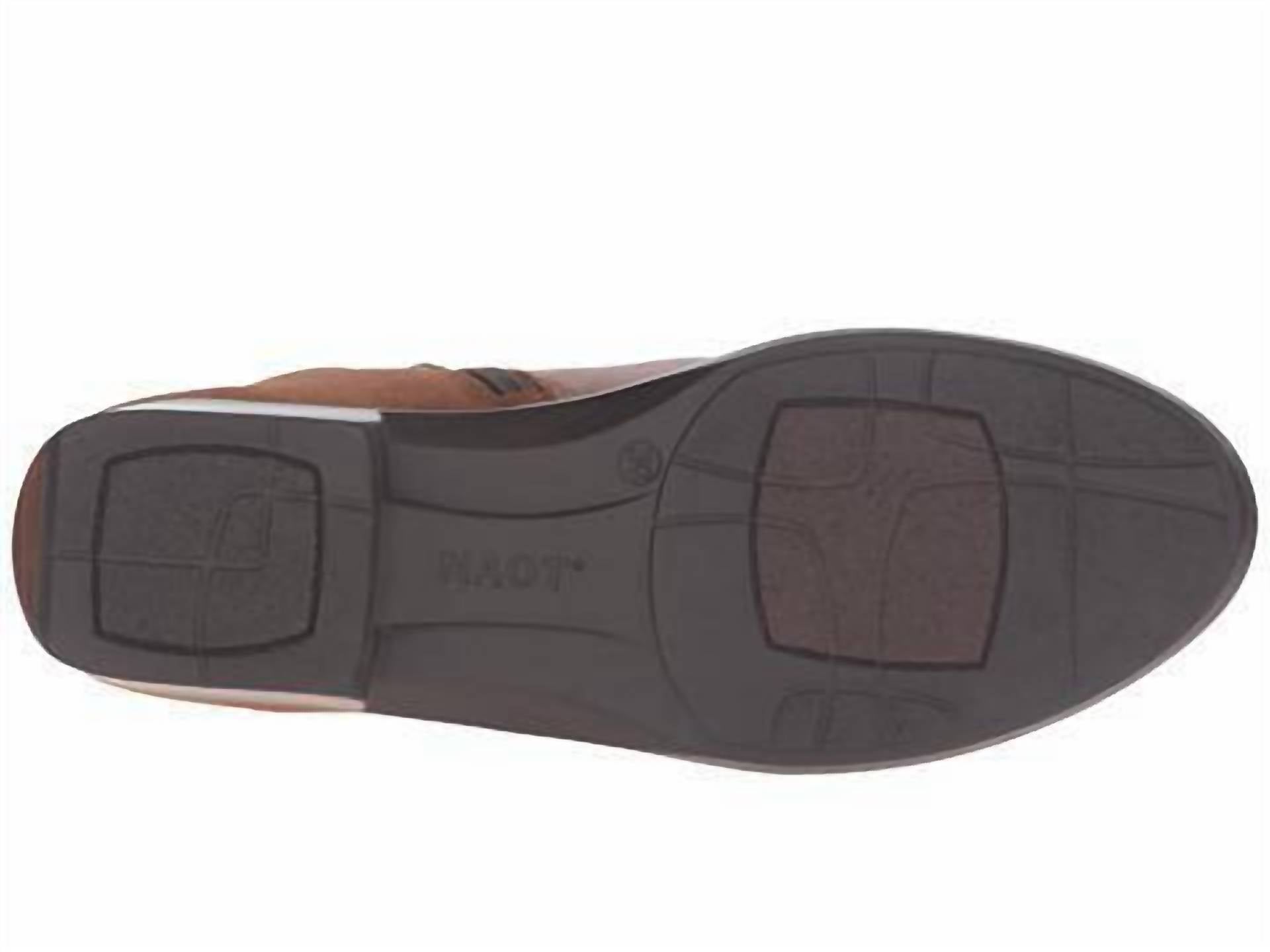 Enhance your wardrobe with the NAOT Women's Helm Ankle Boot, a minimalist style perfect for a dinner party or spring occasion. These ankle boots feature a sophisticated leather and nubuck or leather and suede upper in a chic brown, complemented by a convenient zipper closure. The removable anatomic cork and latex footbed promises comfort as it molds to your foot over time, supported by a lightweight and durable polyurethane sole with a metal shank. Immerse your feet in warmth with the padded technical lining, all crafted with hand-sewn strobel construction for flexibility and strength.