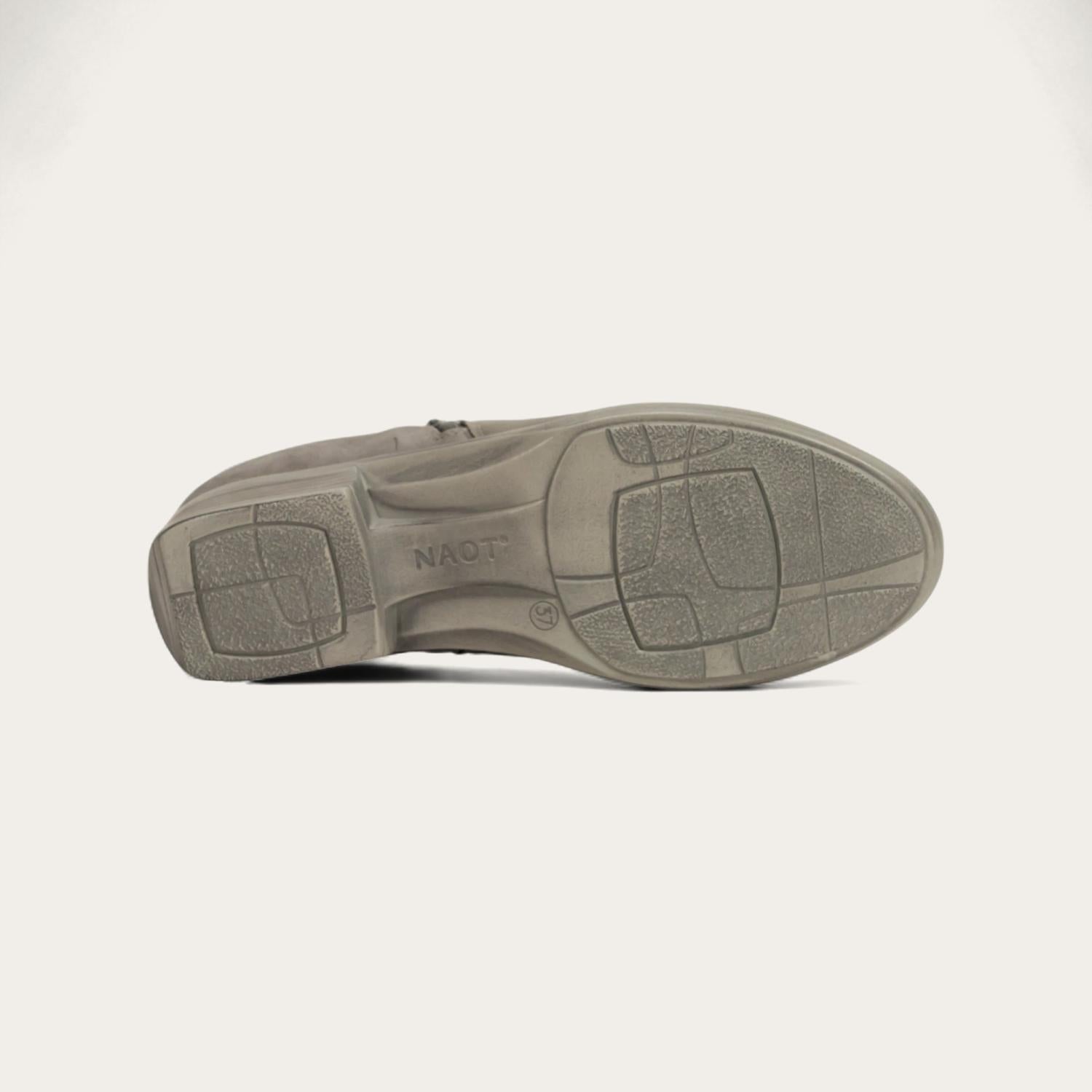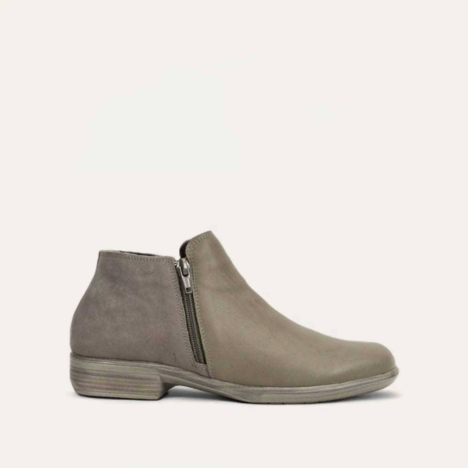 Elevate your style with the Women's Helm Foggy Ankle Boot by NAOT, a perfect choice for a minimalist, vacation-ready look. These sophisticated grey and smoke leather booties feature dual side zippers for easy accessibility and a comfortable round toe. They promise all-day comfort with a padded heel cup and instep, along with a removable, anatomic cork and latex footbed that molds to your foot. Featuring a low 1.5-inch block heel, these boots are crafted for warmth and moisture absorption with a padded technical lining.