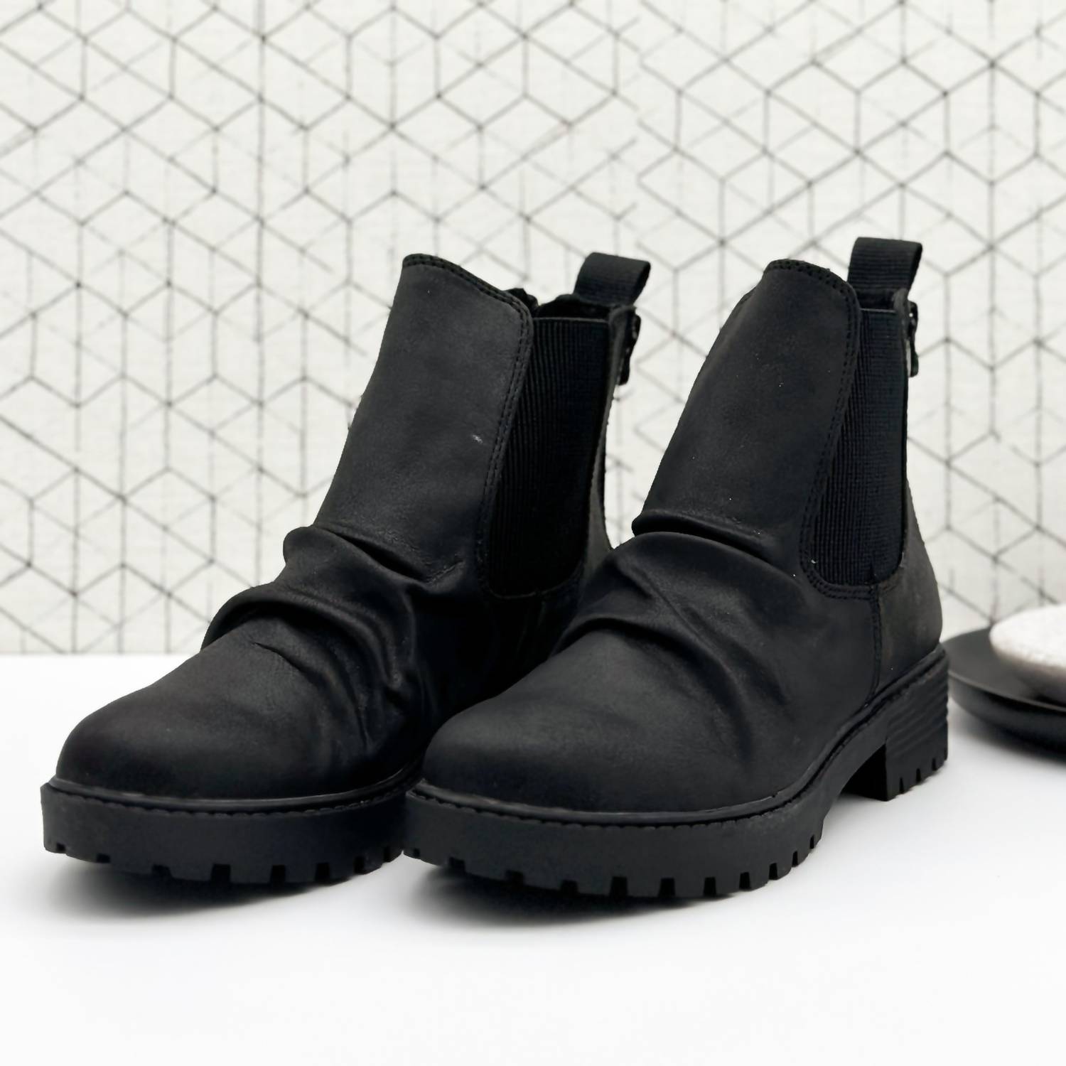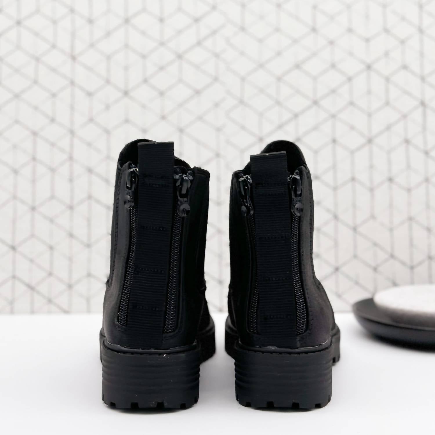 Diga olá à bota perfeita e mais versátil. A altura do tornozelo facilita a transição do dia para a noite. Use-a com sua calça jeans skinny favorita e camiseta para um look mais descontraído, ou combine-a com seu minivestido e jaqueta favoritos para uma saída à noite. A bota de combate Noble Bootie tem um estilo folgado sobre o pé, com puxador e zíperes duplos para calçar e descalçar com facilidade. O elástico no cano proporciona conforto extra. Cabedal em camurça sintética. O solado robusto tem salto de 3,8 cm. O cano mede 11,4 cm. Zíper duplo traseiro e puxador. O tamanho é real; se estiver entre dois tamanhos, escolha um maior.
