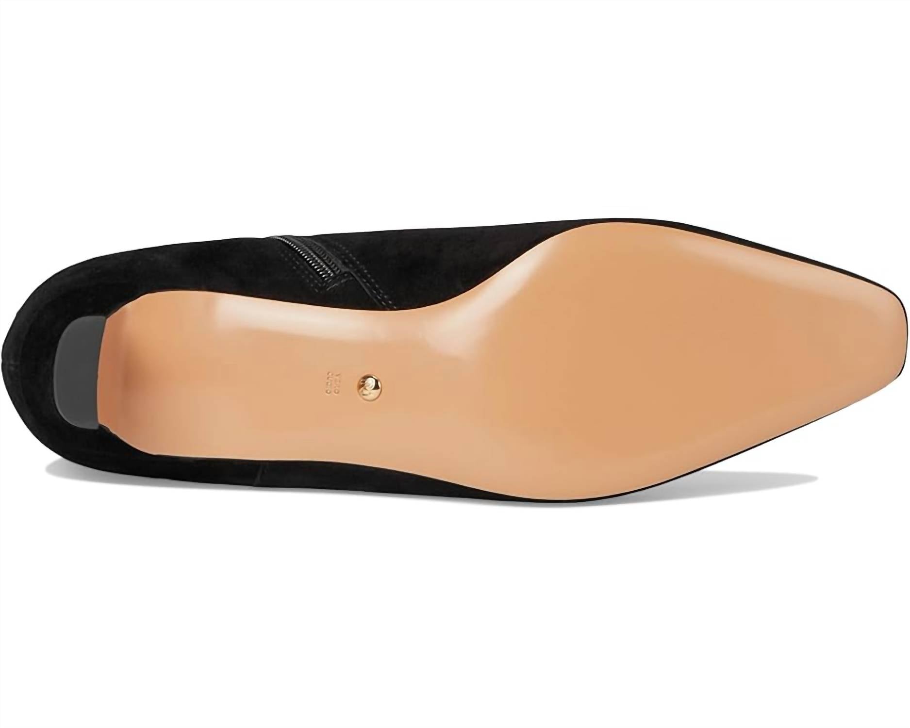 Step out in style with the Women's Galia Suede Booties by PELLE MODA, perfect for any holiday party. Crafted from black kid suede with a 1.77-inch block heel, these booties provide the perfect blend of comfort and sophistication. They feature a side zipper closure and a leather outsole, ensuring durability and ease of wear. With a boot shaft height of 4.32 inches and a circumference of 9.34 inches, these booties are a must-have for your fall fashion wardrobe.