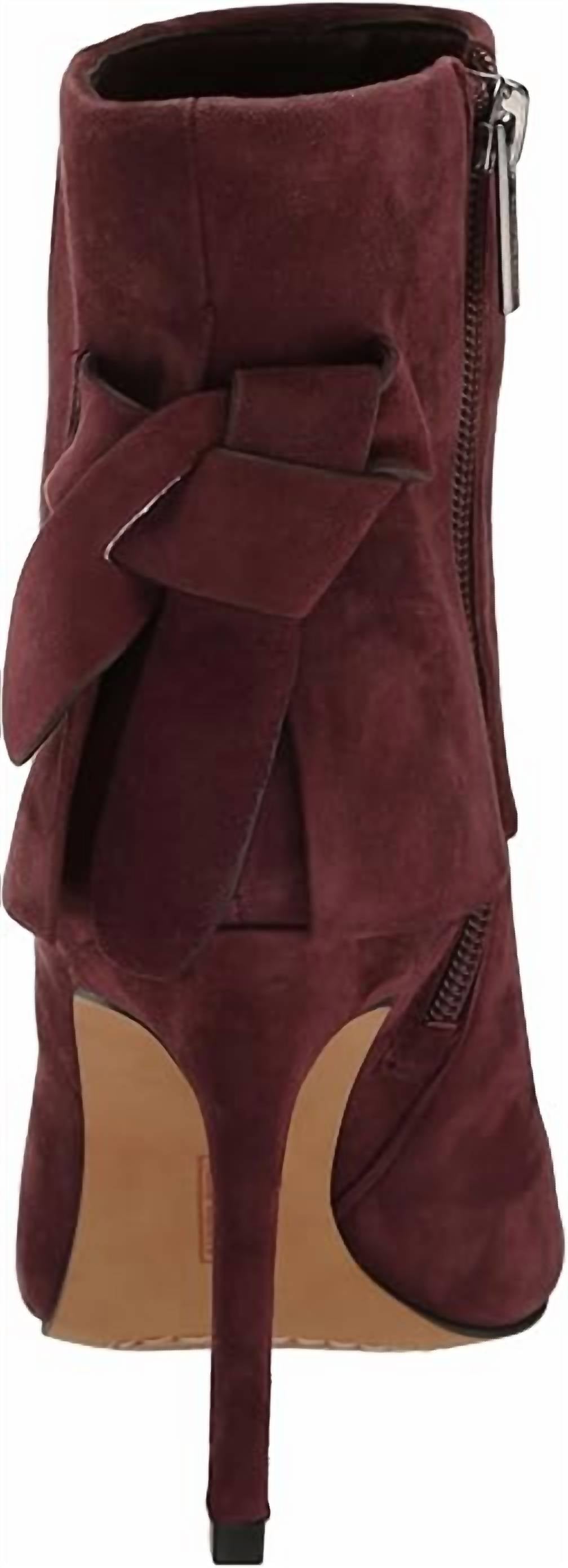 Say hello to the perfect, most versatile boot. The ankle height makes this style easily transition from day to night. Wear them with your favorite skinny jeans and tee for a more laid back look, or pair them with your favorite mini dress and jacket for a night out on the town. Step out in style with the Women's Amesha Suede Open Toe Bootie by Vince Camuto, an elegant choice for evening events. Designed in a chic purple monochrome, these booties flaunt a stiletto heel perfect for a night out, especially around New Year's Eve. These ankle boots feature a luxurious suede construction and stylish open toe shape, making them ideal for fall festivities. Elevate your wardrobe staples with this sophisticated accessory.