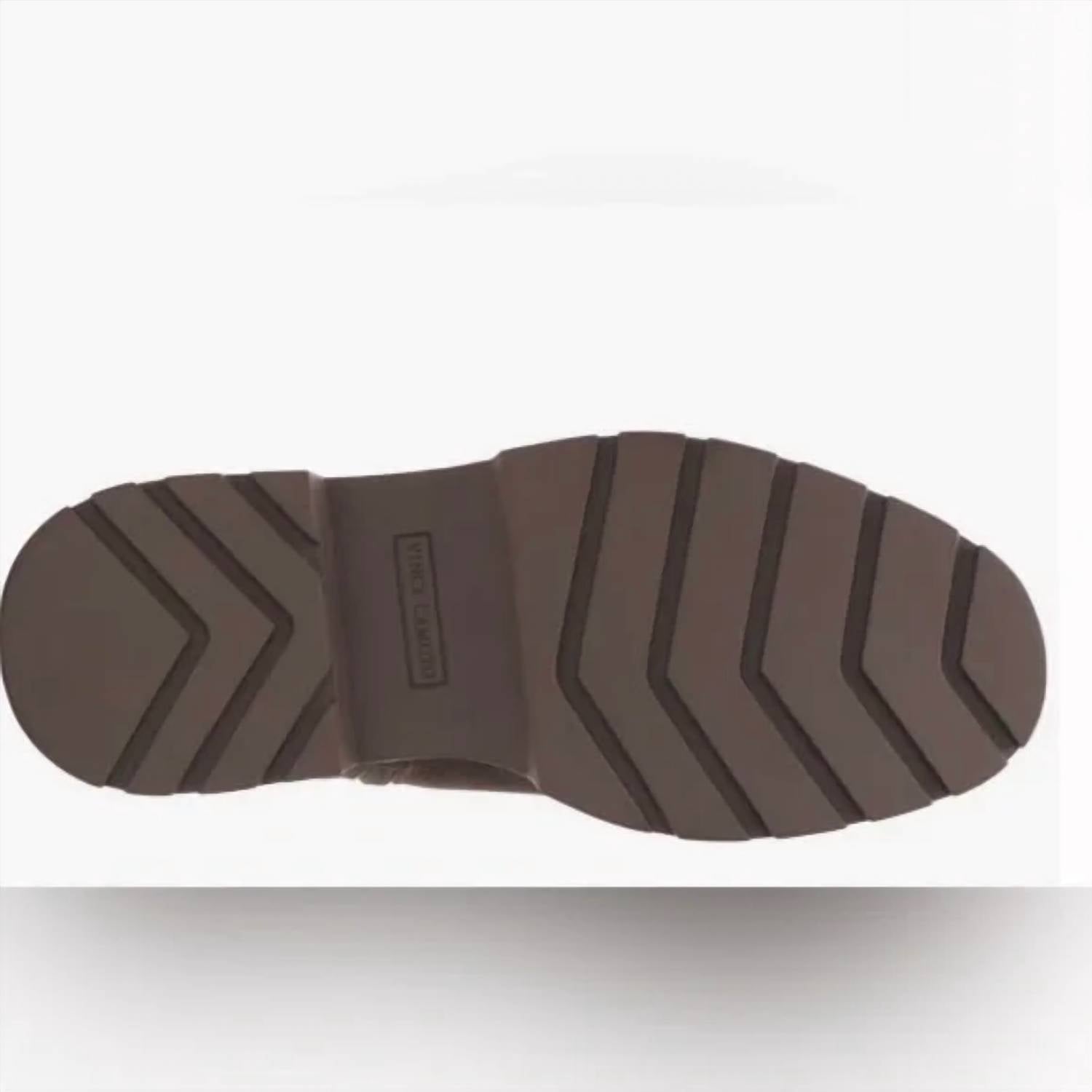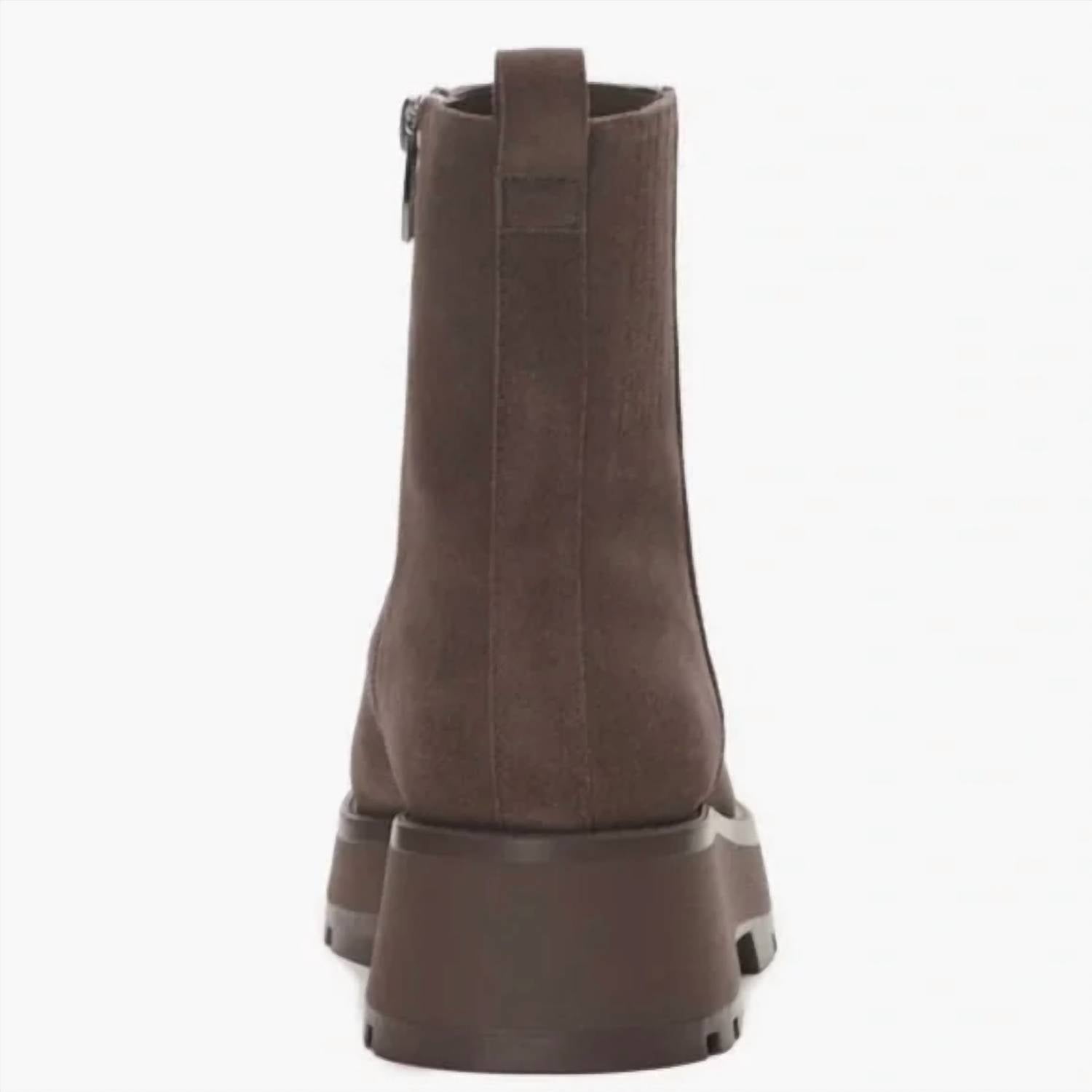 Say hello to the perfect, most versatile boot. The ankle height makes this style easily transition from day to night. Wear them with your favorite skinny jeans and tee for a more laid back look, or pair them with your favorite mini dress and jacket for a night out on the town. Meet the Women's Leather Neframes Bootie by VINCE CAMUTO, a perfect addition to your winter wardrobe for any evening event. Crafted from high-quality leather, this Dark Taupe bootie showcases a minimalist trend with a stylish round toe. Designed with a comfortable block heel, it ensures both elegance and wearability. Ideal for women who appreciate sophistication and style.