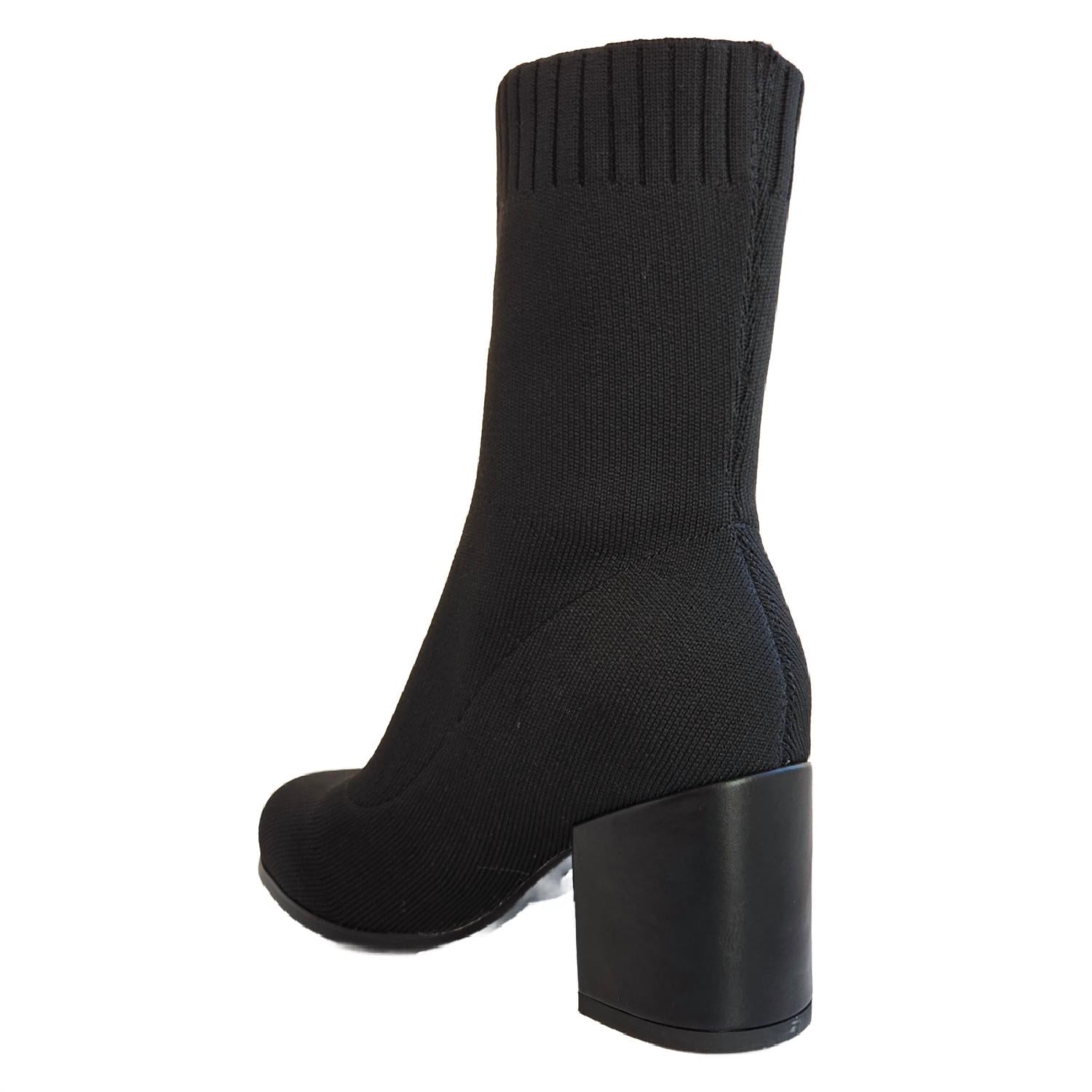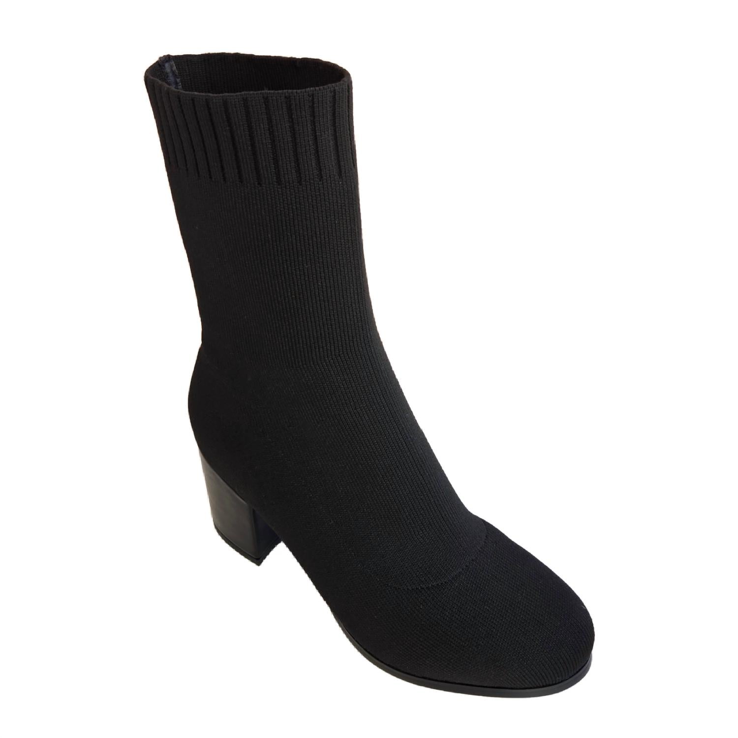 Introducing the Women's Sock Style Ankle Heel Boots by AQUA, a perfect addition to your fall wardrobe. Designed with a round toe and block heel, these boots offer a high heel height of over 3 1/4 inches. Crafted from stretch knit material, they deliver a form-fitting silhouette that blends modern style with all-day comfort. An ideal choice for a dinner party, these mid-calf boots in classic black are the epitome of quiet luxury for the Thanksgiving season.