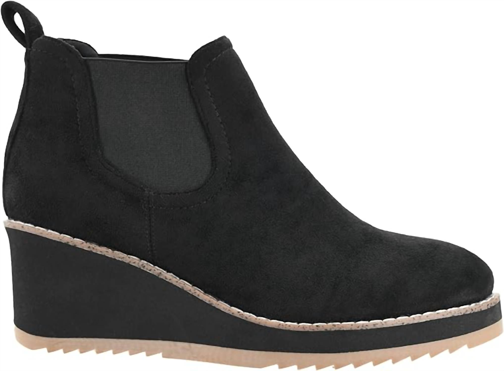 Step into style with the Women's Love You Latte Boots by Corkys Footwear, crafted from faux suede in a versatile black hue. These booties feature a chic round toe design and a comfortable 2.25-inch wedge heel, providing just the right amount of elevation. A full inside zipper ensures easy wear, while cushioned insoles offer all-day comfort perfect for busy days or spontaneous nights. Embrace the blend of style and practicality with these mid-height heeled boots.