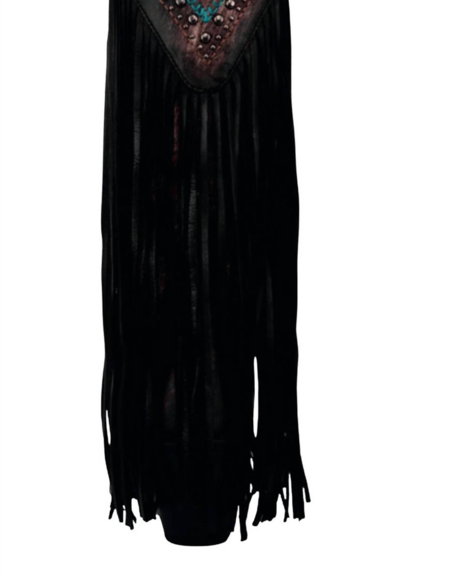 Step into allure with the Women's Crystals Lamb Fringe Boot by Corral, perfect for a charming dinner party or a dynamic Cinco De Mayo celebration. Showcasing a 14-inch shaft adorned with fun fringe, studs, blue embroidery, and dazzling crystals, these turquoise multicolor boots are crafted to impress. Designed with sturdy pull-on straps, an elegant snip toe, and a 2.5-inch chunky stacked heel on a leather outer sole with a rubber insert, they offer comfort for all-day wear. The smooth inside leather lining and cushioned leather insole make these boots as comfortable as they are eye-catching, seamlessly blending edgy style with western flair.