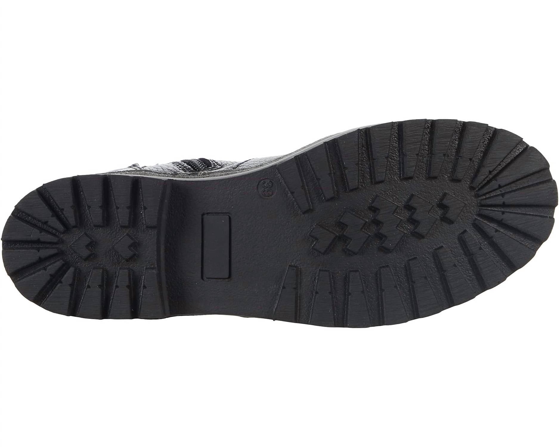 The most effortlessly cool moto boots that are just a comfortable as they are easy on the eyes. Step into fall fashion with the Eric Michael® Women's Cynthia Waterproof Leather Boots, perfect for a vintage-inspired travel ensemble. Featuring a unique fold-over collar and a traditional lace closure, these boots offer a secure fit with a touch of flair. Crafted with a leather upper and leather-textile lining, they promise durability and comfort, enhanced by a generously cushioned footbed and a shock-absorbing midsole. Imported and designed in a classic shade, these boots boast a round toe, a low heel height of 1.75 inches, and a heel height measuring 1 1/4 inches, ensuring stylish ease throughout the Thanksgiving season.