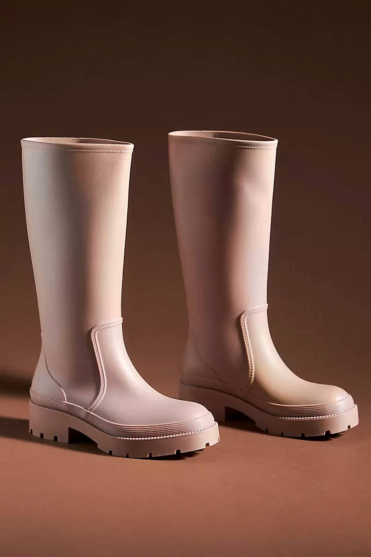 Apresentamos a Bota Feminina Rain Pour da Jeffrey Campbell, projetada para durabilidade e estilo com um elegante acabamento bege fosco. Estas botas de cano alto são confeccionadas com cabedal sintético, forro em tecido e solado sintético, oferecendo resistência à água e conforto. As botas apresentam bico arredondado, salto de 4,8 cm e plataforma de 2,5 cm para maior elevação. Com cano e abertura nas pernas de 33 cm, estas botas têm um tamanho real e são uma opção prática para dias chuvosos.