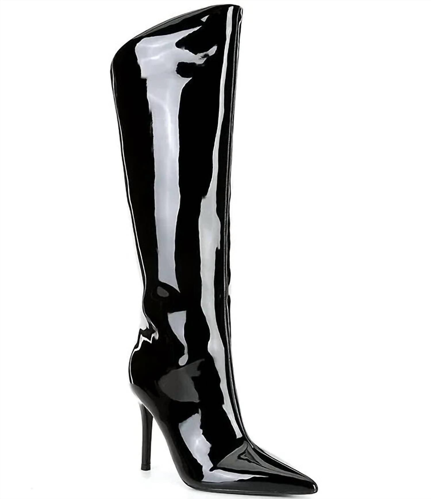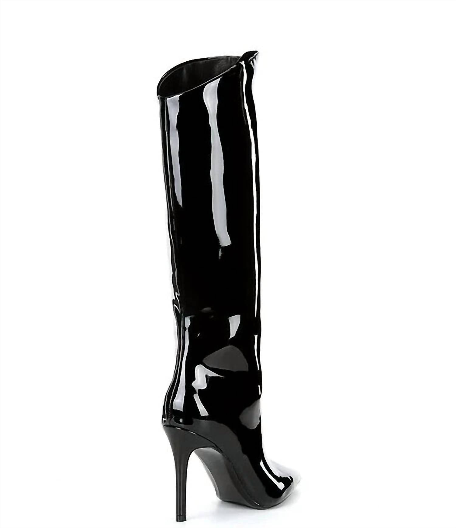 Uma tendência que veio para ficar. Cabedal sintético envernizado. Design pull-on. Forro sintético. Solado sintético. Altura do cano aproximada de 32 cm. Circunferência do cano aproximada de 38 cm. Altura do salto aproximada de 10 cm.