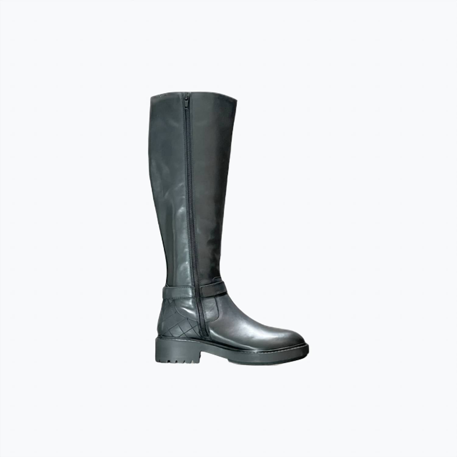 Uma tendência que veio para ficar. Botas pretas deslumbrantes acima do joelho. Confeccionadas em couro premium. Apresentam uma elegante tira no tornozelo com fivela e um exclusivo punho de calcanhar com costura arlequim. Apresentam um forro têxtil confortável, um salto bloco resistente de 3,8 cm e um solado de borracha de 2,5 cm para tração confiável. Circunferência do cano de 35,5 cm. Projetadas para proporcionar ajuste e estilo perfeitos.