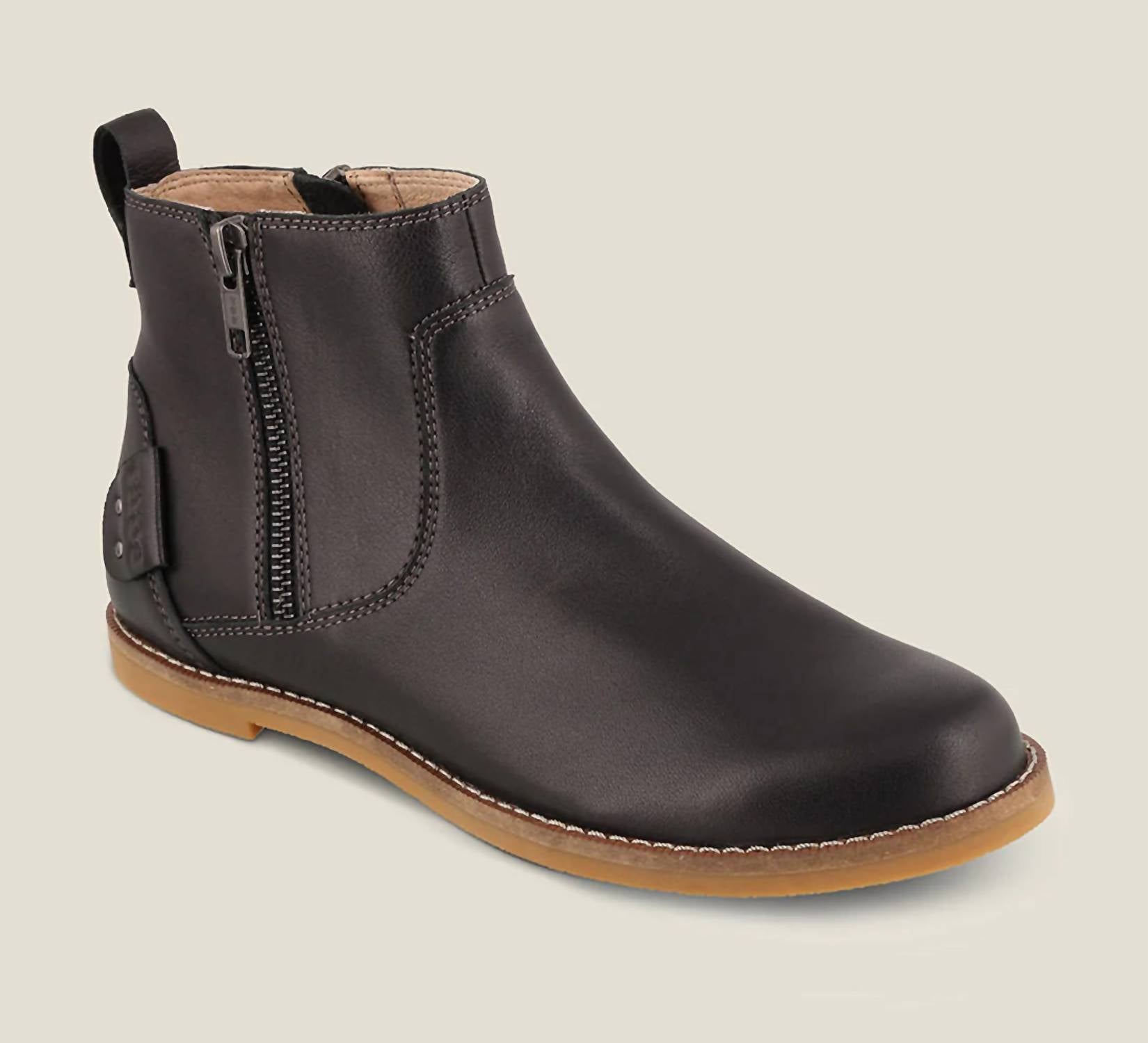 Introducing the Women's Double Time Boot by Taos, crafted for style and comfort with European softy burnished leather in a sleek black hue. This short boot features a unique double zip closure for easy wear and a rounded feminine toe character. Enjoy exceptional arch and metatarsal support, along with a leather footbed lining and forefoot cushioning for all-day comfort. With a 4 1/2" boot shaft height and an 11" circumference, this boot combines flexibility and durability with its genuine leather welt and durable rubber outsole. Heel height is 0.5", making it ideal for minimalist fall occasions. Care is simple with spot cleaning using a damp cloth. Each shoe weighs approximately 10.4 oz.