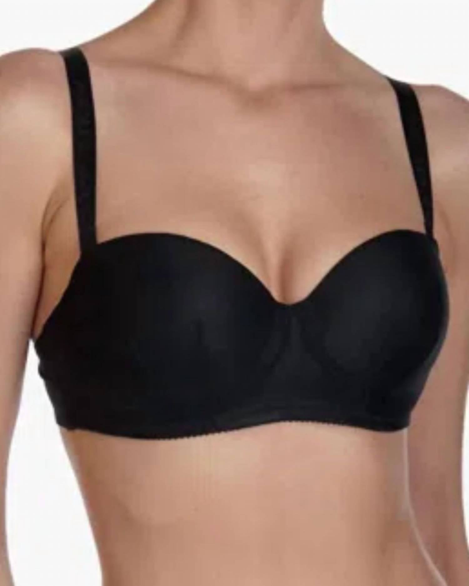 The most comfortable and stylish bra that you'll reach for daily. Introducing the Long Strapless Bra by Ajour, an essential piece for the modern woman's wardrobe. Made from 88% polyamide and 12% elastane, this solid black bra offers a perfect fit with its luxurious material construction. As an ideal foundation piece for summer engagements, it brings comfort and elegance to any monochrome trend. Care for this exquisite bra with a simple hand wash to maintain its quality.