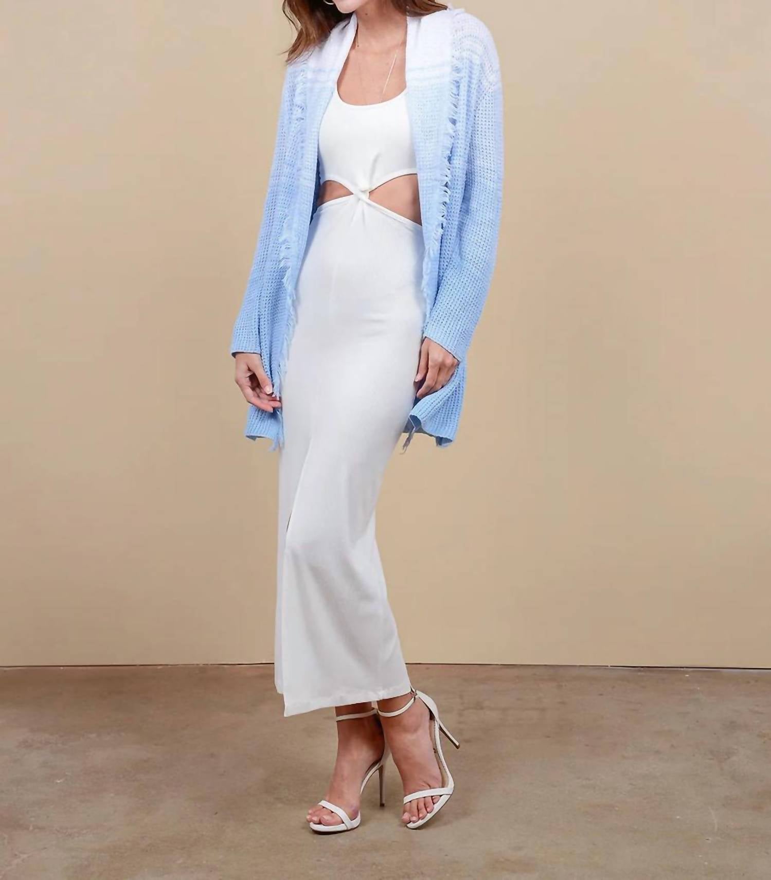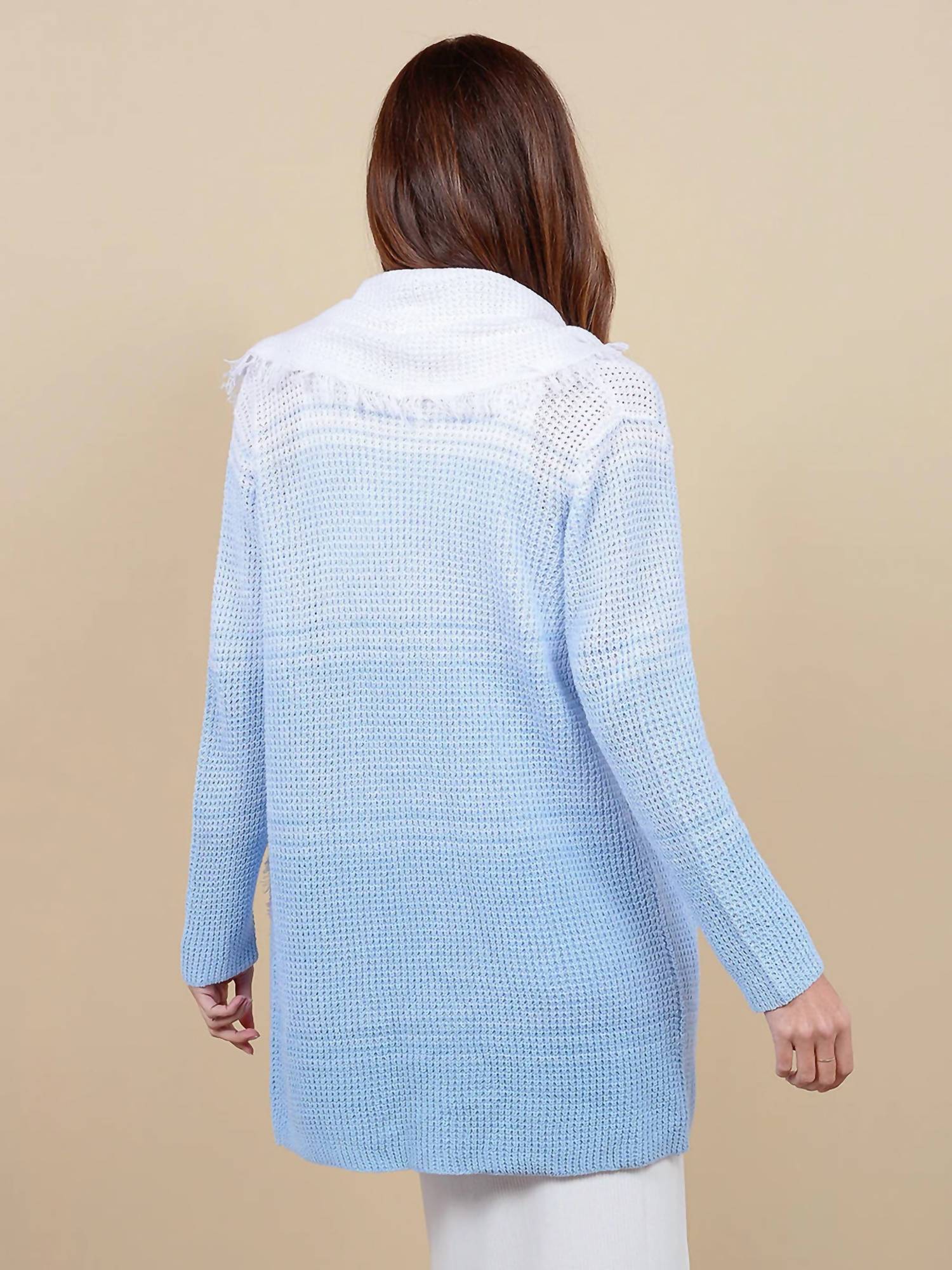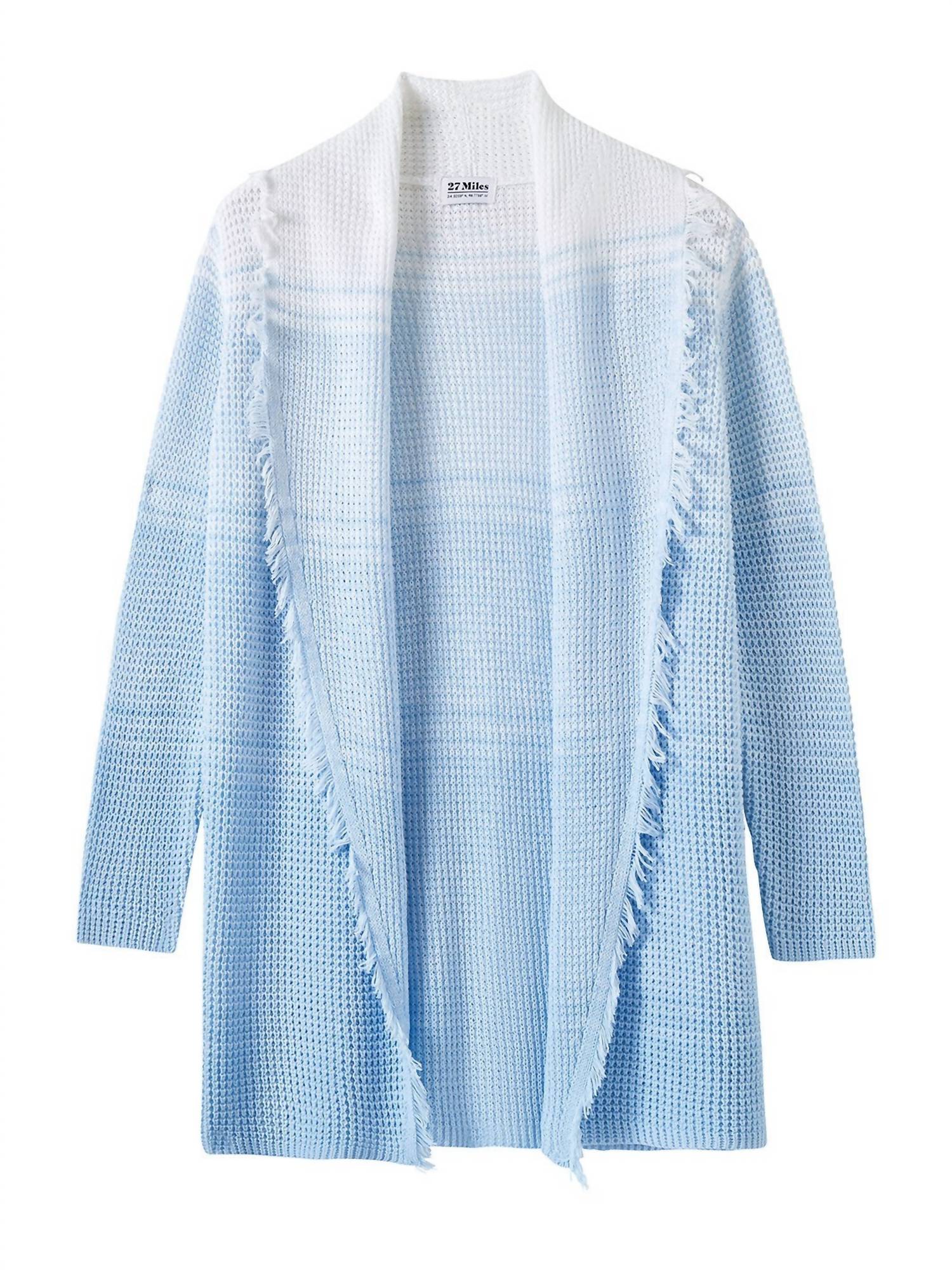 This cardigan will be a sweater-rotation favorite. Introducing the Jupiter Cardigan by 27 Miles Malibu, a stylish statement in a sky blue ombre design perfect for fall. This women's cardigan features long sleeves and a textured pattern, crafted from soft 100% cotton for breathable comfort. The piece embraces a relaxed yet polished look with a sophisticated collar neckline. Care instructions: Hand wash.