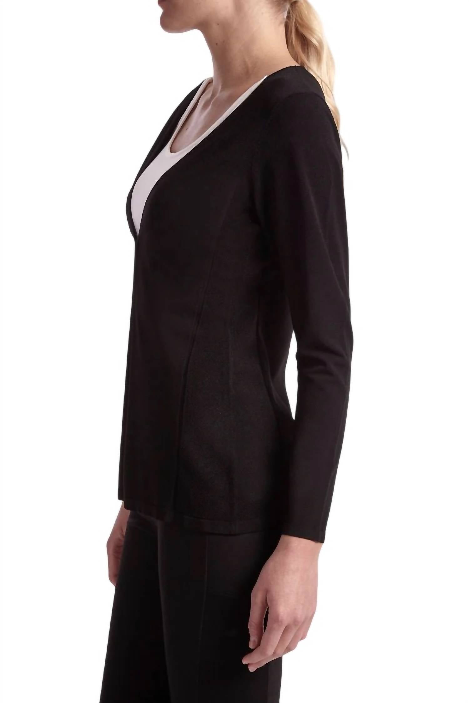 Apliques de malha nas laterais e fecho simples de colchete. A modelo tem 1,75 m e veste tamanho P. 83% Viscose, 17% Poliéster. Lavar à máquina com água fria, não usar alvejante, secar na horizontal, passar a ferro frio, se necessário, ou lavar a seco. Importado. Gola em V. Mangas compridas. Cerca de 62 cm do ombro à bainha.
