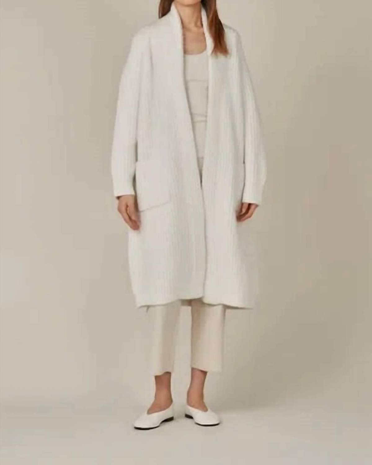 Introducing the Grade & Gather Long Shawl Collar Cardigan, a minimalist staple for winter travel and streetwear. This ivory-hued cardigan features long sleeves and a practical pull-on closure, accented by a chic shawl collar with convenient pockets. It boasts a luxurious composition of 74% acrylic, 22% polyester, and 4% spandex for warmth and comfort. Care for this textured piece by machine washing inside out on a delicate cycle at 30°C, lay flat to dry, and use a cool iron on the reverse if needed. Available in sizes Small (UK6-8) and Medium (UK10-12).